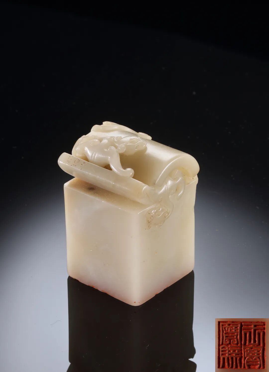 【清乾隆御制铜铸刻二龙争珠图五供】,成组造型稳重、铸刻繁丽,尺寸巨大,总重高达735公斤。威武的游龙纹样彰显至高无上的皇权,是罕见的完整套装。本品级别的祭器陈设多为紫禁城内的宫殿和庙宇订制,或作为呈现皇帝的贡物。本组五供工艺较之故宫藏品工艺更为丰富,所雕刻龙纹工艺更加精美,且在局部细节设计上参考了上古青铜器之纹饰,品级显见更高。值得一说的是,铜铸五供套件是用精铜铸造,本品所用的铜,系专门为宫廷所炼制的合金铜,内含诸多贵重金属,颜色深沉,内蕴精光,历经风雨而不锈蚀,堪称一绝。