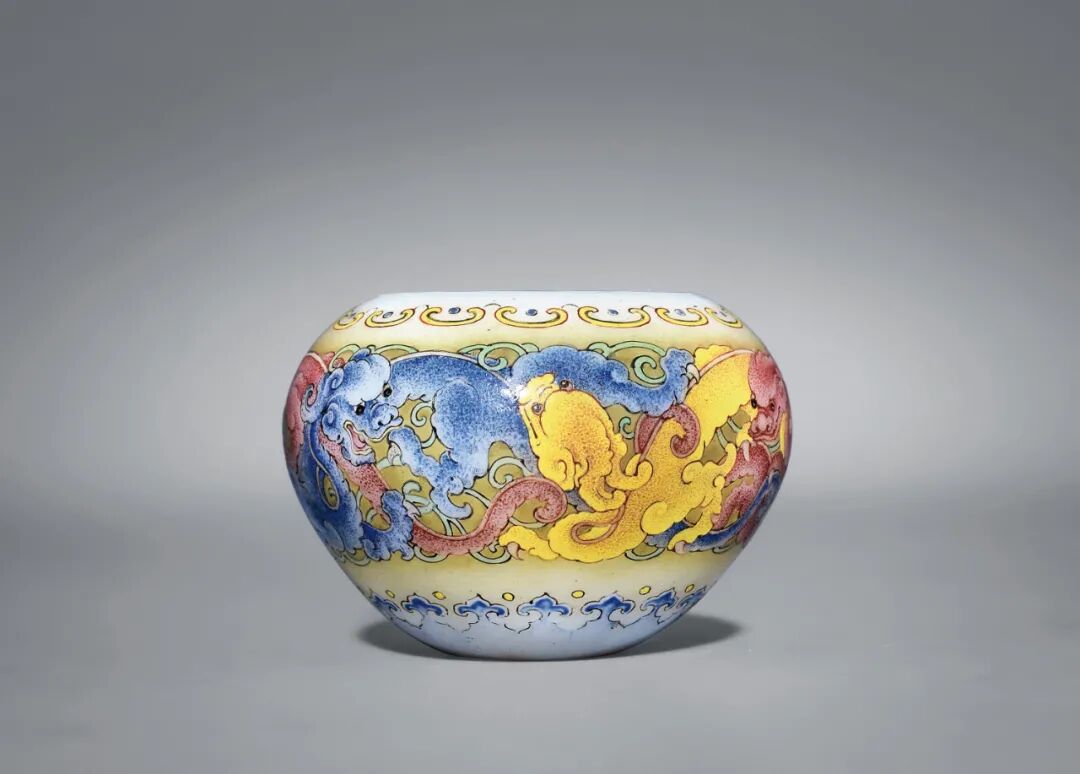 清雍正-乾隆白料胎画珐琅蟠螭纹水丞