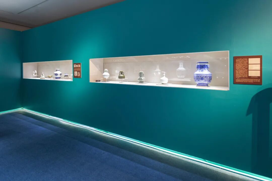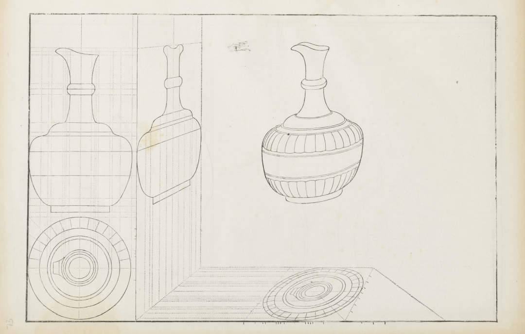 《视学》书木刻插图中,以多幅御窑厂瓷器线描图以表现器物的不同透视角度,亦可印证雍正朝御瓷塑形的科学与创新精神之源。本展中【清雍正白釉模印菊瓣刻缠枝花卉纹花浇】,【清乾隆青花花卉团寿贯耳六方瓶】均可与《视学》之插图一一对应,相映成趣。