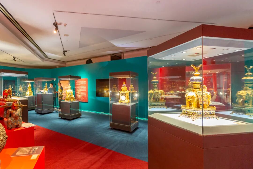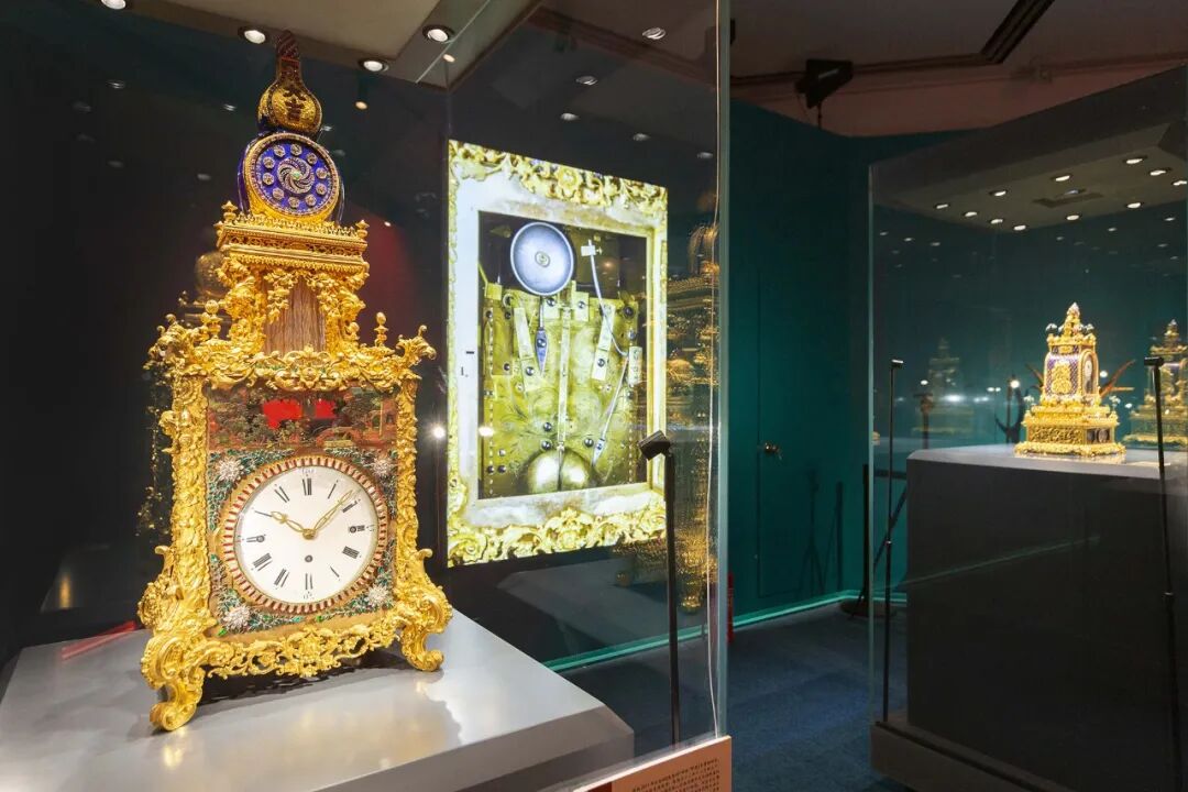 特展第三章“清宫钟表”,明星展品包括【清乾隆御制铜鎏金转花转水法大吉葫芦钟】、【18世纪铜鎏金太平有象水法转花音乐自鸣钟】、【清乾隆-嘉庆铜鎏金御题诗西洋游戏人物钟】、【清乾隆铜鎏金转花西洋童子打乐钟】等,旨在聚焦欧洲为中国宫廷特制的钟表作品和中国宫廷自制中西结合钟表,由此探究西方世界打开中国的努力与来自中国皇权态度的互动关系。