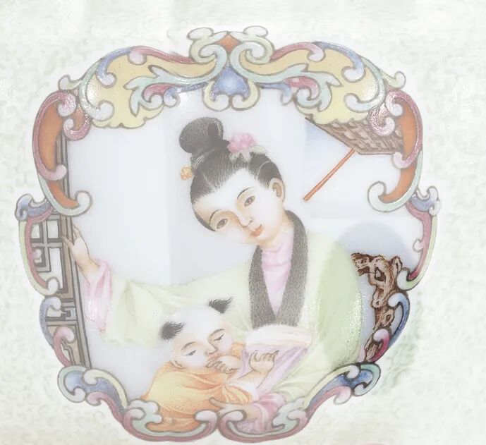 清乾隆珐琅彩仕女婴戏小贯耳瓶(局部)