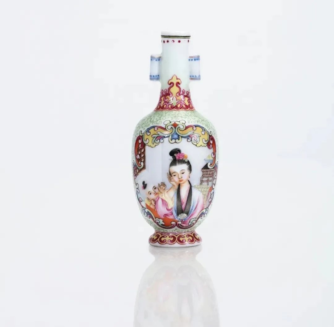 清乾隆珐琅彩仕女婴戏小贯耳瓶