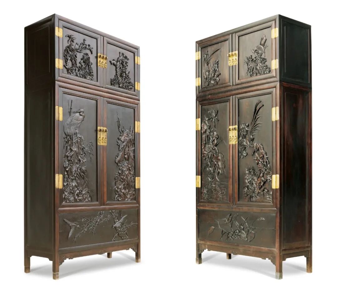 清乾隆紫檀花鸟纹大四件柜(一对)
