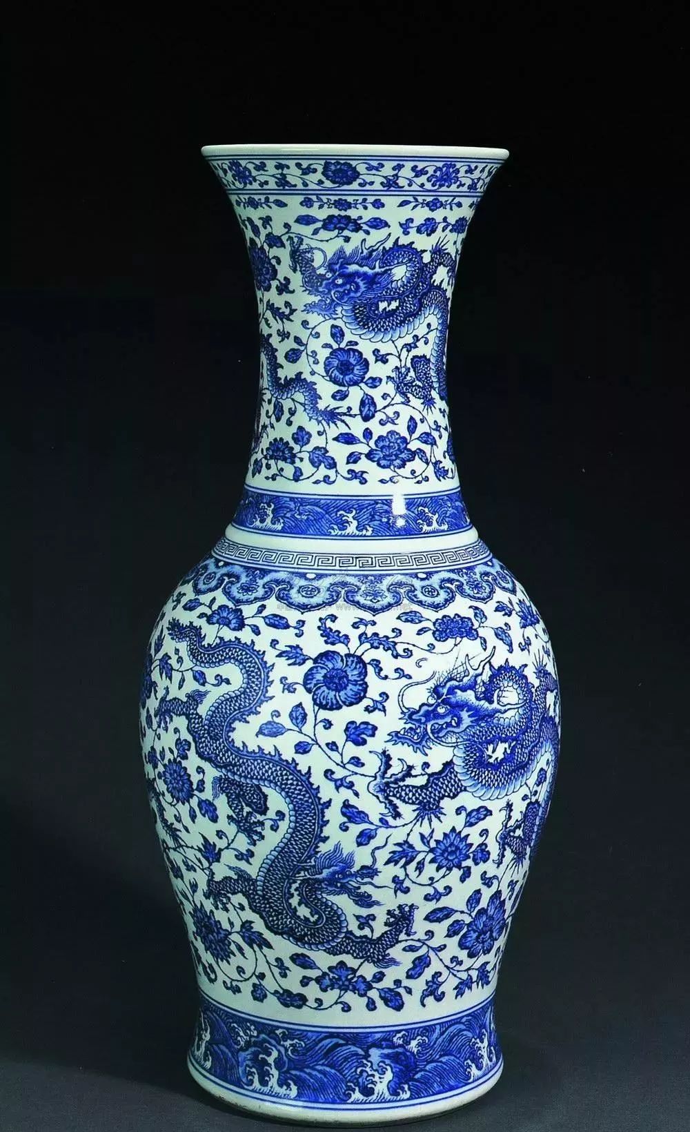凤尾尊由元、明时期的花觚演进而来,是花觚的一个变种。凤尾尊的整体造型为喇叭状口,颈部挺拔,腹部圆鼓,平底外撇,底圈多为二层台圈足,因腹下部至足底外延似凤尾而得名。康熙年间的凤尾尊,整体风格雍容华贵,娇艳富丽,高贵典雅,气度不凡。我国的制瓷工艺发展到清代达到了历史的最高水平。康、雍、乾三朝盛世的器型最为丰富,既有仿古又有创新。尤其是各式装饰性瓷器,如瓶、尊之类较之元、明两代大为增加。其中:康熙青花风尾尊、康熙青花观音尊、棒槌瓶、马蹄尊、凤尾尊等都是康熙朝独有的器型。景德镇凤尾尊民窑烧制比官窑较多,品种有青花、五彩、三彩和描金等。