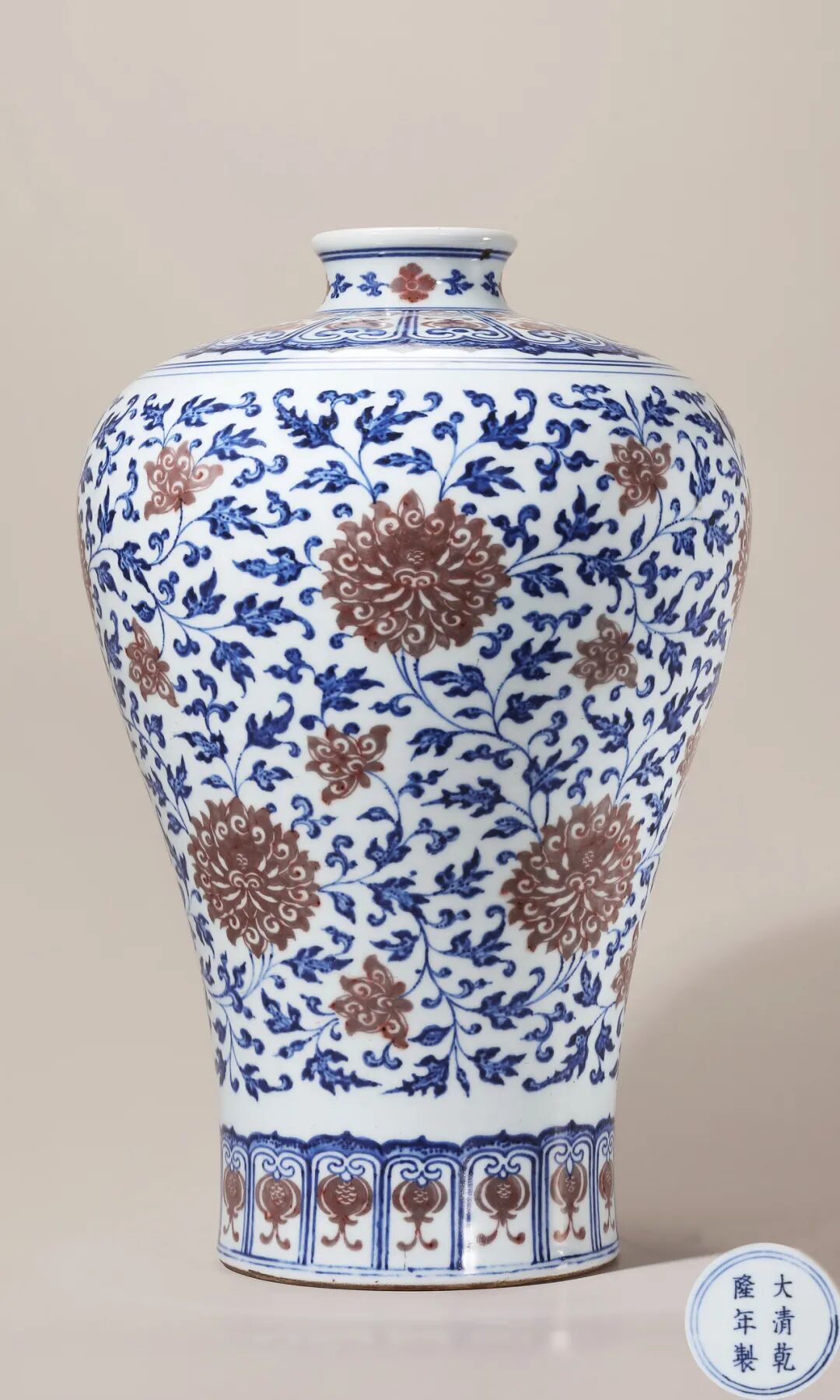 清乾隆青花釉里红缠枝花卉纹梅瓶