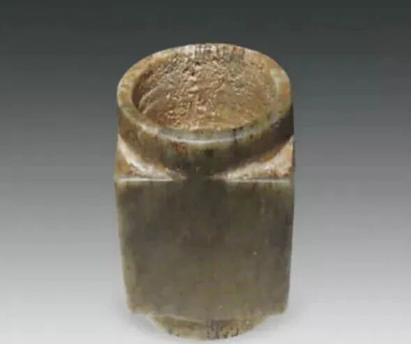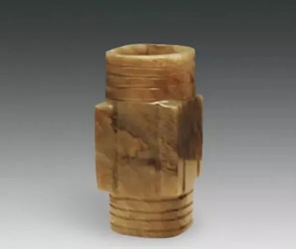 这件玉琮是改制品,是由外方内圆矮体素面玉琮改制的。这种外方内圆矮体素面玉琮原来的制作可能与陶寺文化、齐家文化有关,改制年代则需要进一步分析。