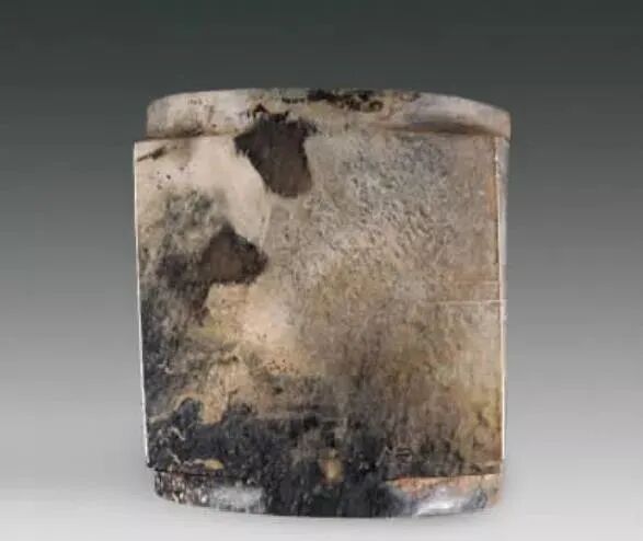 这是一件光素无纹玉琮。这种光素无纹玉琮可能是齐家文化玉琮。然而,在齐家文化分布区出土、目前收藏于甘青宁三省区各级政府博物馆的50多件玉琮中[3],类似M5∶1244玉琮这样制作如此规整、大小的外方内圆矮体玉琮并不多见,而在中原地区陶寺文化中却发现有这类玉琮,如山西芮城清凉寺遗址曾出土过几件这类玉琮。M5∶1244玉琮的玉质与芮城坡头(又名清凉寺)1号玉琮基本相同(图二)[4]。因此,M5∶1244玉琮可能是齐家文化玉琮,也可能是陶寺文化玉琮。其制作年代大概在公元前2000年前后。形制类似的玉琮在安阳殷墟还有花园庄东地M54∶349玉琮[5],此器可能也是属于齐家文化或陶寺文化的玉琮。