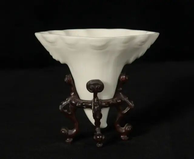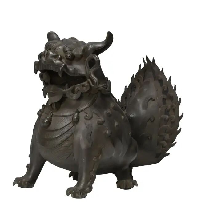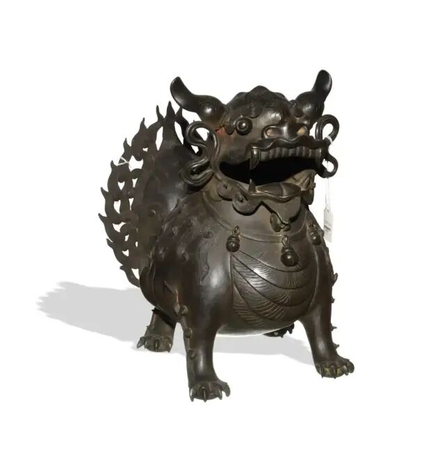Lot 98 十六/七世纪 德化犀角形杯(附原配硬木座)尺寸:10.16 cm X 11.43 cm X 8.89 cm来源:来自弗吉尼亚州麦克莱恩的Chen先生,继承自他的父亲,其父亲于1949年从中国福建获得该藏品。德化窑白釉瓷始于宋代,至明代达到了全盛巅峰时期,创新不断,精品层出不穷。德化窑的瓷器在近代寻常可见,但一向以明代德化为贵。「中国白」(BLANC DE CHINE)是法国人对明代德化白瓷的赞誉,他们认为这是「中国瓷器之上品」。本件作品型如犀角,葵口,口沿外壁塑有层层叠叠的山峰。通体尽施白釉,瓷质致密。其釉面白中微泛牙白,洁净无暇,透光犹如凝脂,温润柔和。杯体所雕纹饰简洁精致,造型生动,原配硬木雕灵芝底座,精致细巧,是典型的明代晚期至清代早期作品。参阅故宫博物院馆藏,编号 新00109101(fig.1 & fig.2)。参阅苏富比拍卖2014年05月香港拍卖,编号 628。Lot 99 十七世纪 青花松鹿纹笔筒(附硬木座)来源:来自弗吉尼亚州麦克莱恩的 Chen 先生,继承自他的父亲,其父亲于1949年从中国福建获得该藏品。笔筒直壁,口沿无釉露胎,胎质洁白紧密,釉色清亮莹润。画面中绘有双鹿、松柏、灵芝,寓意松柏长青,福禄万年。青花浓淡相宜,技法精湛。底款为「大明成化年制」青花六字楷书款,仿前朝款也多出现在康熙早期瓷器。参阅故宫博物馆藏,编号 新00109101 (fig.1)。参阅苏富比拍卖2014年05月香港拍卖,编号628。来源:购于佳士得纽约2019年9月10日,芝加哥艺术博物馆珍藏中国瓷器及工艺精品拍卖,拍品109 号。此拍品为铜铸瑞兽,色古而凝重。头呈龙形,双目圆睁,耳尖上翘,身型健硕,筋骨强健,肌肉饱满,四肢关节处有火焰形装饰,四爪如钩踞地有力,尾部为火焰形。兽体中空,头部为盖,其内可焚香,试想当年每当香料点燃,香烟缭绕之中,必是为殿宇增添了一层祥瑞和浮华的色彩。类例见纽约佳士得2017年9月13日售铜狮形香炉,编号722。来源:来自南佛罗里达州 Morris 先生,藏品于 1980 年代在香港购得。此笔筒采用上好花梨,色泽深沉,气韵古茂,其木纹精妙有如云蒸霞蔚,又如山河奔腾,可见取材之精。形制为竹节形,造型端庄大气,又不失文雅,整器质地莹润,包浆丰厚,是一件难得的文房佳器。黄花梨为明代至清代早期家具制作的首选之材,因其质地细腻,色泽沉静,纹理变化多样,深受世人喜爱。黄花梨由于过度使用已经匮乏,故而弥足珍贵。清初「朴学」渐盛,文人崇尚自然,追求朴实简洁,表现于器物,不假繁饰而重实用,突出其本身的天然纹理与质地之美。此件笔筒竹节形雕工简洁,配合其天然纹理,君子浩然之气和文人清雅之趣兼得。同类型可参阅芝加哥博物馆,编号2009.630(fig.1)。另可参阅佳士得拍卖2012年05月香港拍卖,编号4088;佳士得拍卖2015年03月纽约拍卖,编号194。碗敞口,深腹,圈足,内壁白釉,碗心绘以团蝶纹,外壁绘珐琅彩团蝶纹四组,每组团蝶纹由两只相异的蝴蝶与四季花卉纹构成,花卉蝴蝶细腻妩媚,艳丽非凡。足底施白釉,蓝料彩双圈内楷书「雍正年制」四字款。晚清民国年间瓷器烧造中,仿古之风盛行,尤以仿雍正瓷器居多,其中以珐琅彩的瓷器仿造几乎达到了以假乱真的境界,甚至比真品更精细绝伦。此件作品更是深得前朝精髓,从颜色、胎骨、造型上无一不与前朝一致,色彩运用也更甚于之前。民国仿雍正珐琅彩在拍卖市场上收藏价值极佳,本件作品更是其中的佼佼者,弥足珍贵。其影响一直波及明清。故从雕工及玉质来看,此件作品应为元代产物。座屏满工雕琢,构图繁密缛华,制作工艺精湛。此砚屏装饰华丽,气度不凡,置于书斋案头,别有一番意趣。可参阅芝加哥博物馆馆藏,编号1930.261(fig.1)。另可见大英博物馆馆藏,编号1936,0413.26(fig.2)。以及故宫博物院馆藏,编号-新00074776(fig.3)。
