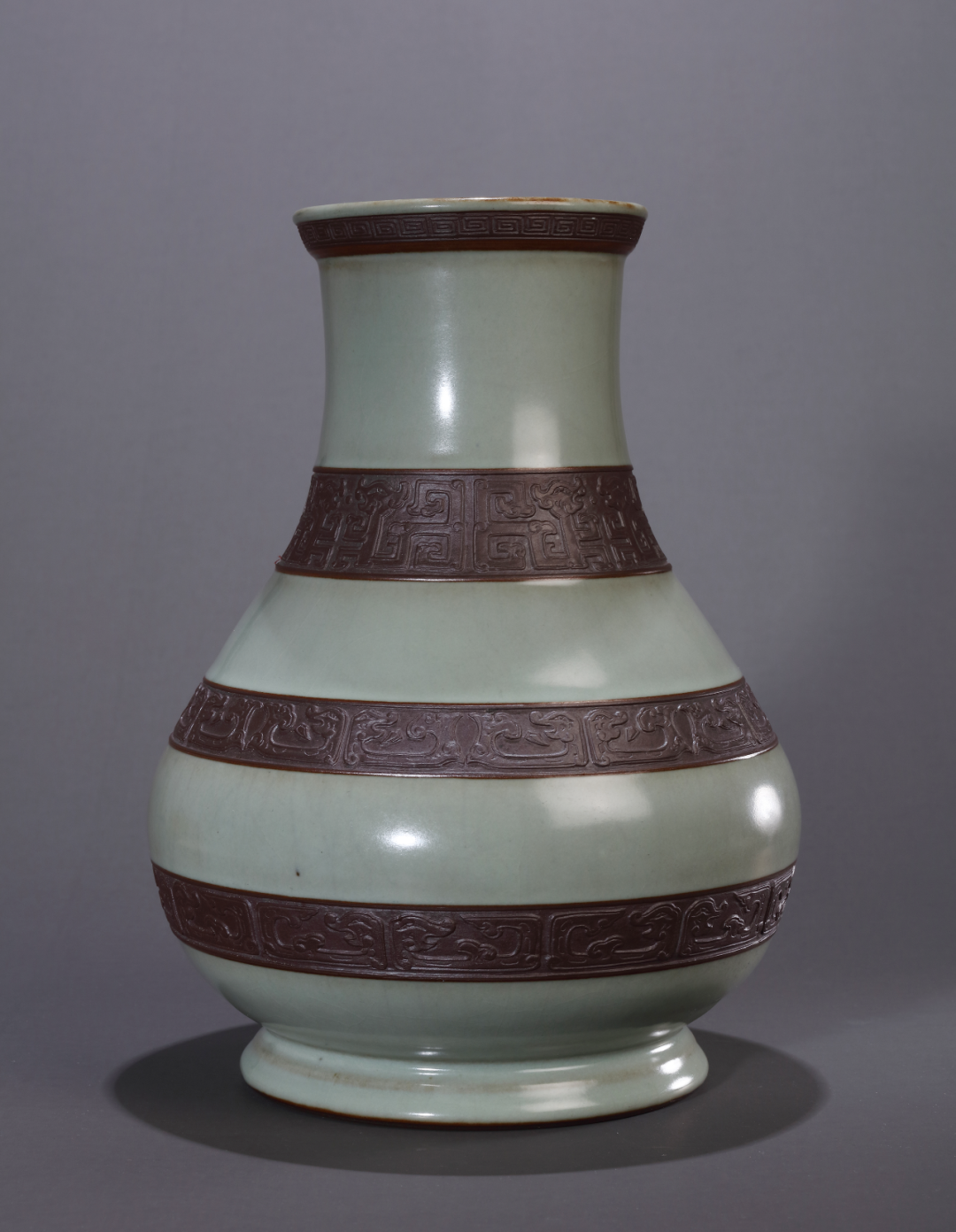 清雍正-乾隆 仿汝“铁骨大观”釉尊