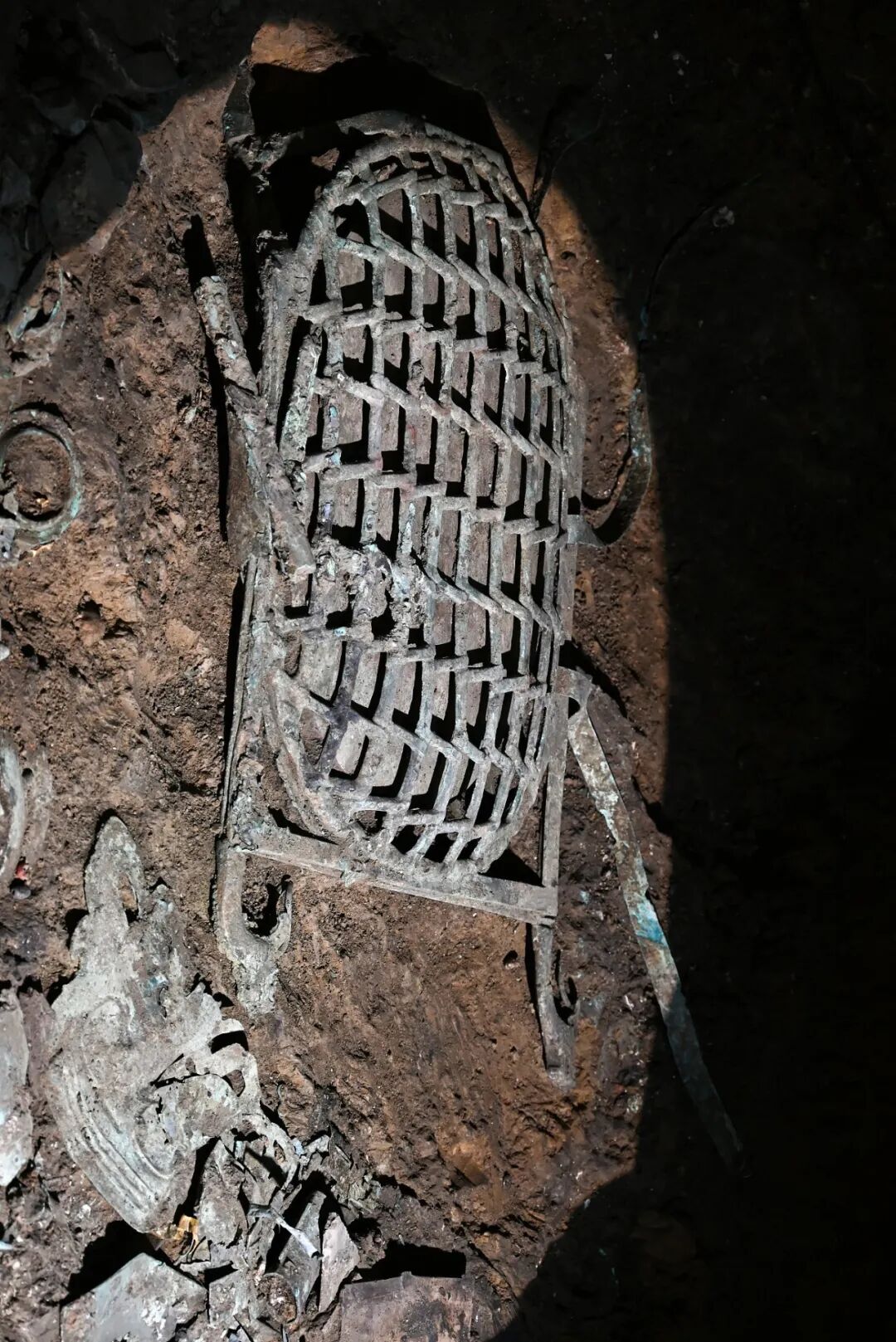 三星堆遗址考古现场7号坑的龟背状网格形器