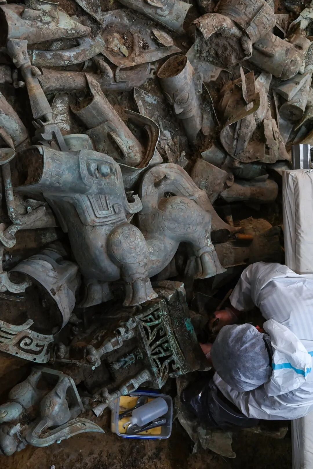 在“分离”3000年后终于合体,专家认为这件充满想象力的珍贵文物堪称中国青铜文明的“巅峰之作”。这也预示着,三星堆“祭祀坑”中的许多器物有可能是“一家人”。到底还有多少青铜器可以拼合,值得期待。