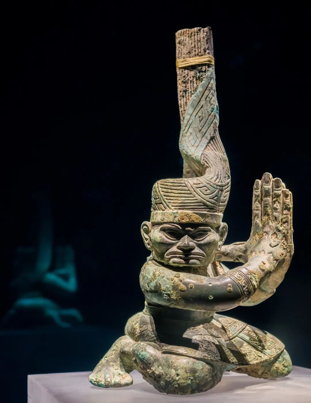 青铜扭头跪坐人像
