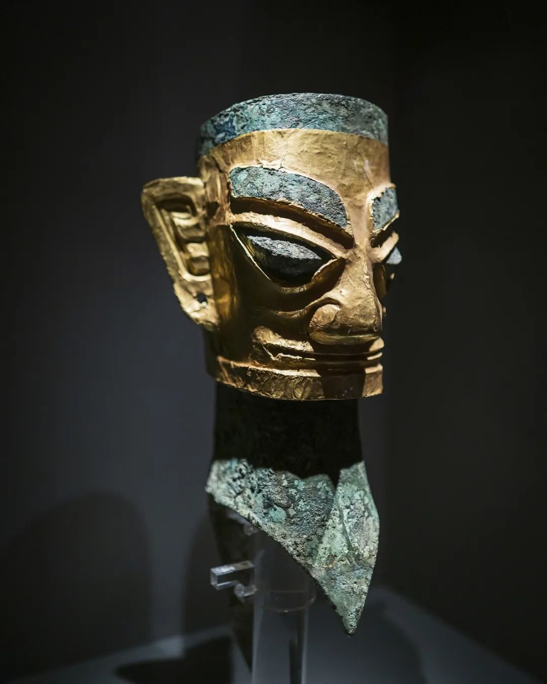 三星堆戴黄金面具青铜人头像