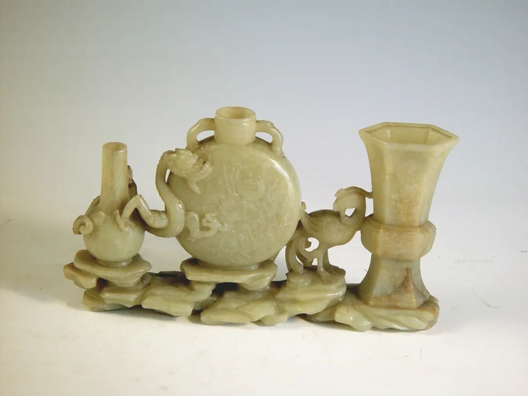 所谓博古,即博览古玩古物之意。古代具有较高艺术的古器物如钟鸣鼎彝等因其珍贵而见者甚寡,所以用玉作成博古清供摆件等,为人们提供一条认识古玩的途径