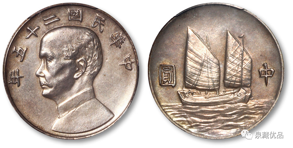 民国二十五年,孙中山像背帆船中圆小型银币样币