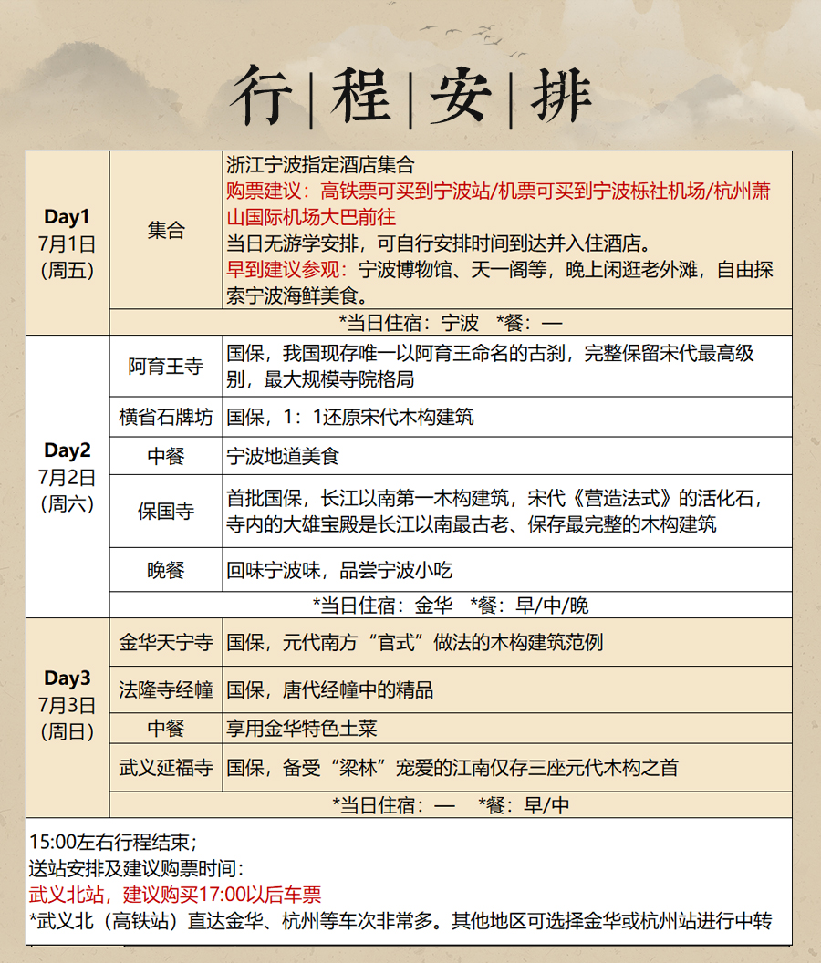 7月1日至3日,让我们跟随刘江岭老师,一起走访宁波、金华的代表性木构建筑,在千年古寺中感受南方建筑独有的「慢」与「滞后的高级感」。