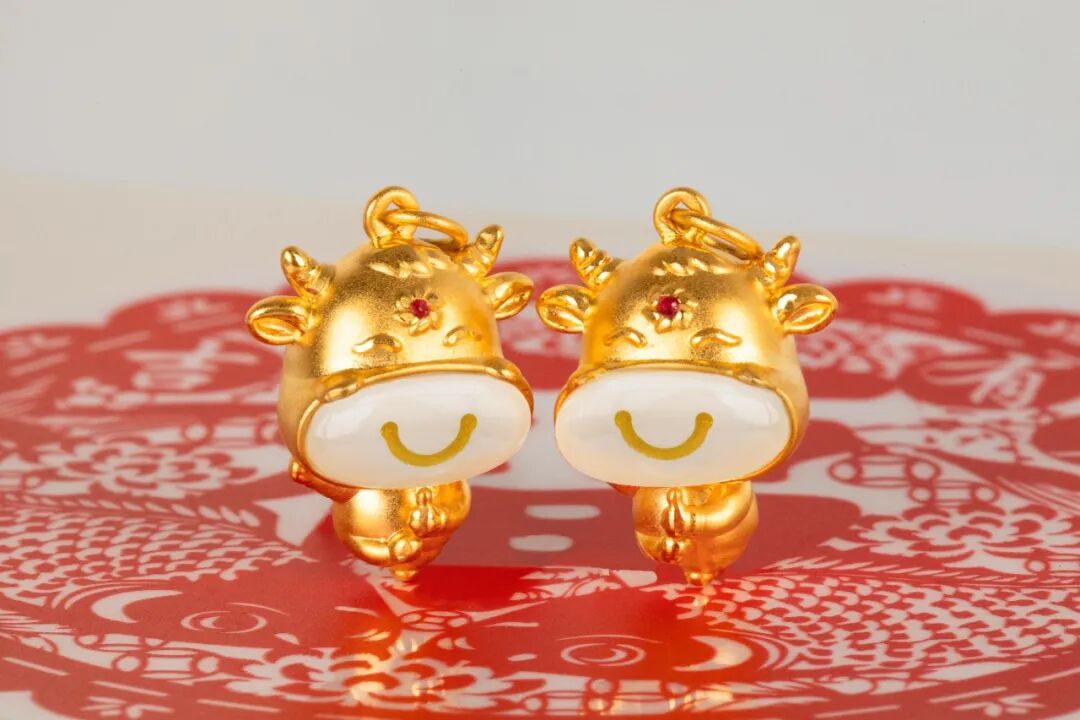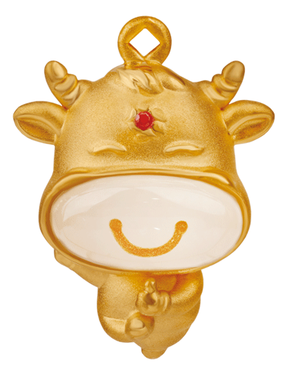 将黄金的璀璨、和田白玉的温润结合,以足金为牛身。