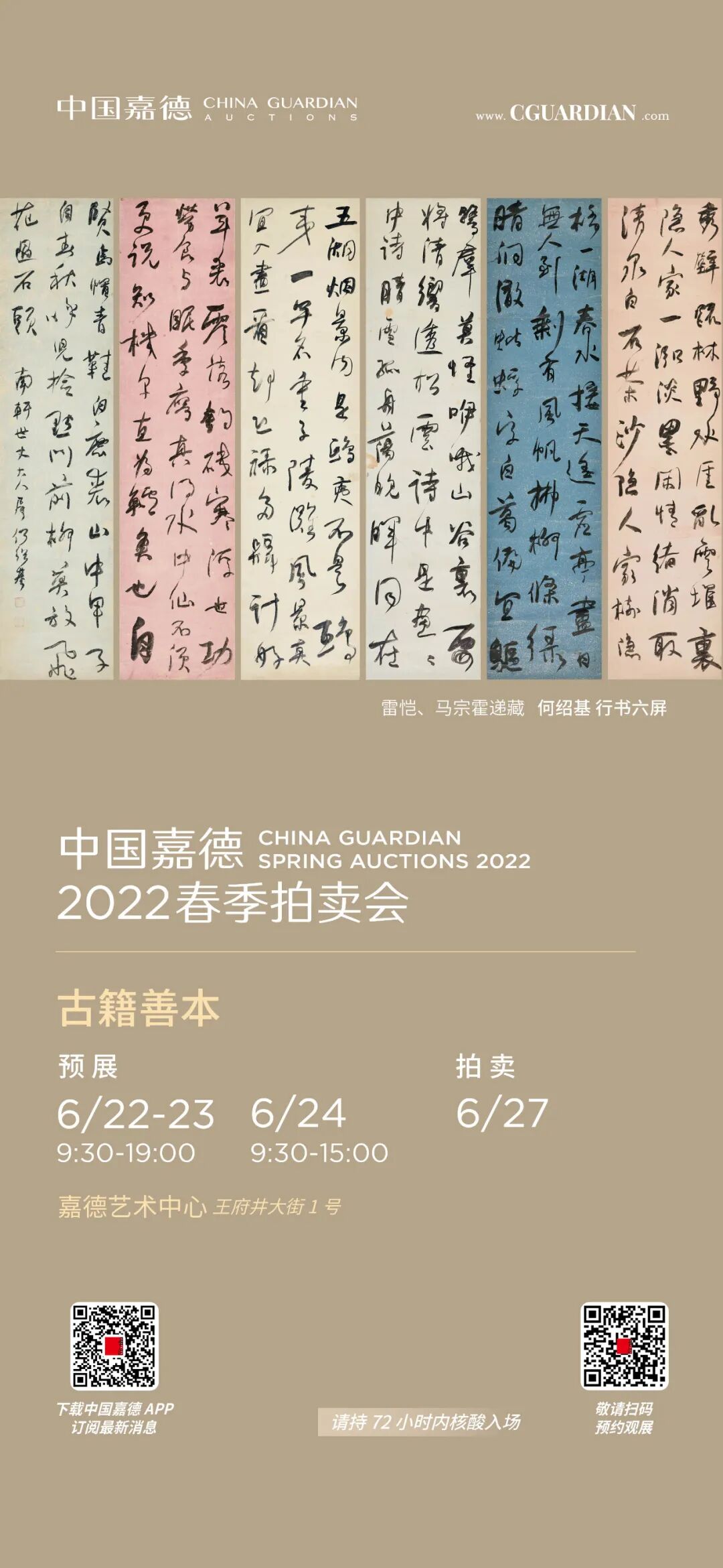 因疫情防控要求,中国嘉德2022春拍预展实行线上预约,敬请提前预约后观展。目前仅接受个人预约。