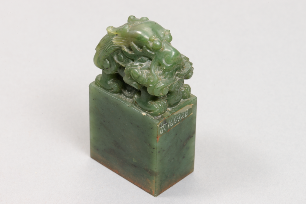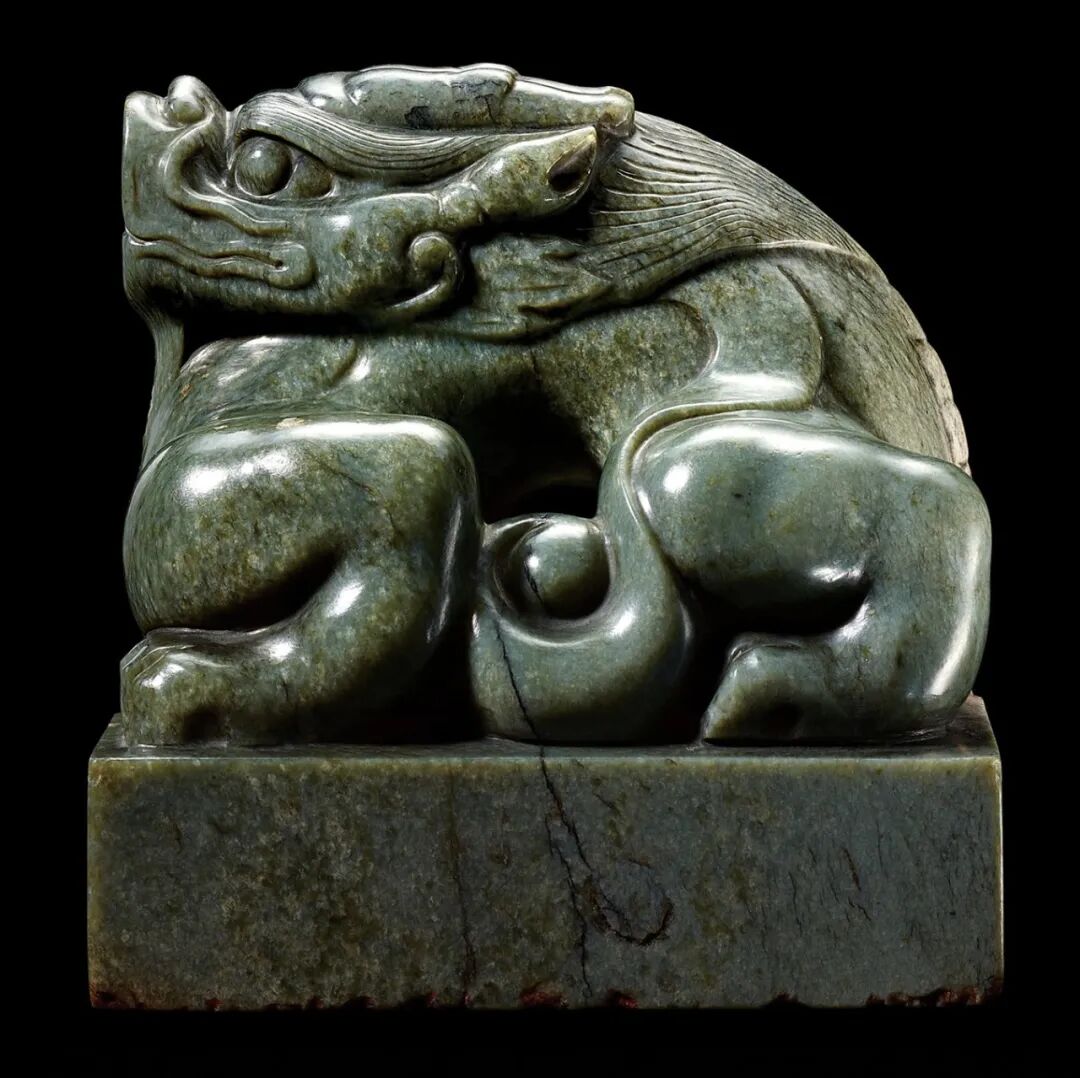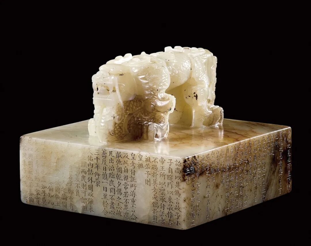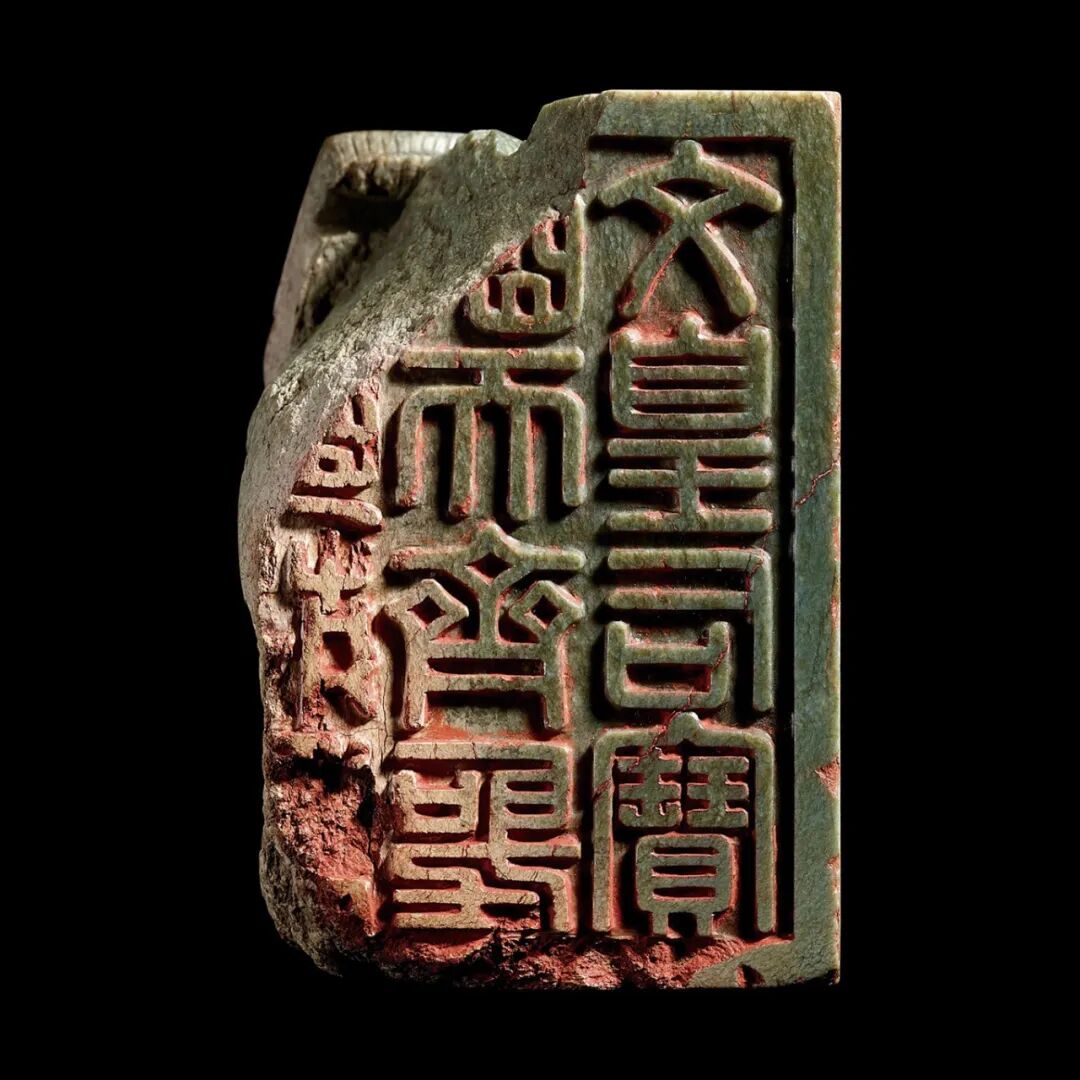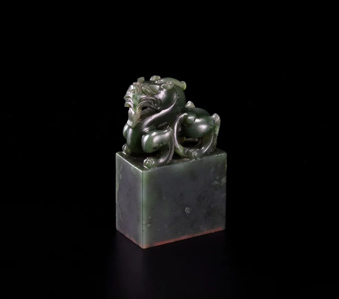 明朝印玺最为稀有,乾隆皇帝本人在1782年写了一首诗,表达了对明朝印玺被毁的悲痛之情。明朝印玺之中只有一方硕果仅存的永乐仁孝文皇后青玉龙钮谥宝,此玺遭掷损,有着火烧留痕,2021年于苏富比以4,300万港币拍出。仇国仕第一次看到它是在2004年,当时就觉得这方宝玺工艺水平相当之高,邀请北京故宫印玺专家郭福祥先生为它断代,这也是他第一次接触保留了原始印文的明朝印玺。