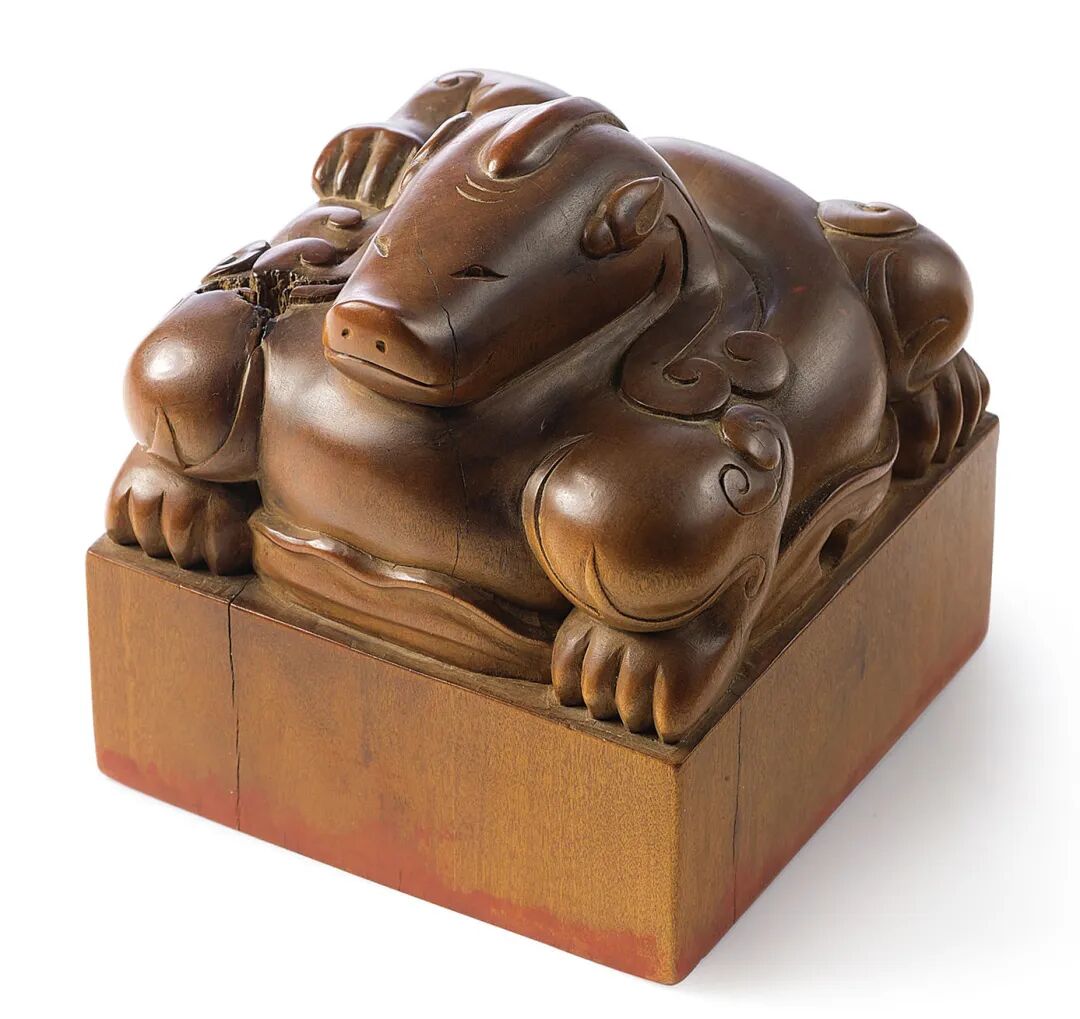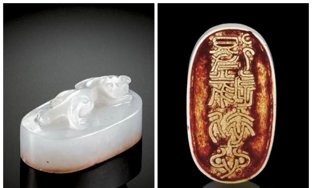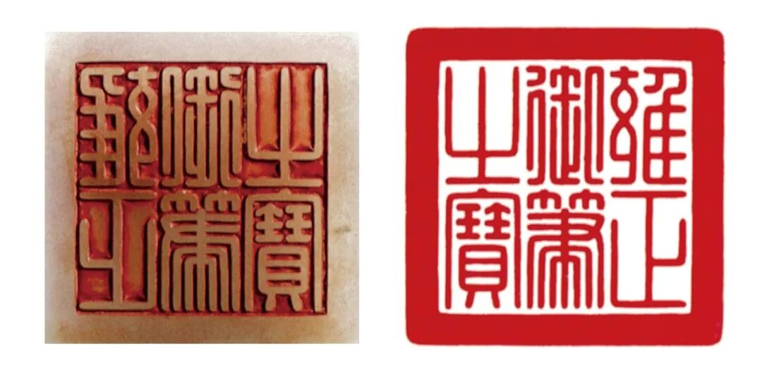 早在预展之时,即有众多藏家对此玺多有探讨、众说纷纭,讨论此枚宝玺造型之少见,材质亦无皇家气派之高精。然检索清宫旧藏,有多方印玺与本次拍品材质、造型类似,可证此玺出身名门、身世显赫。