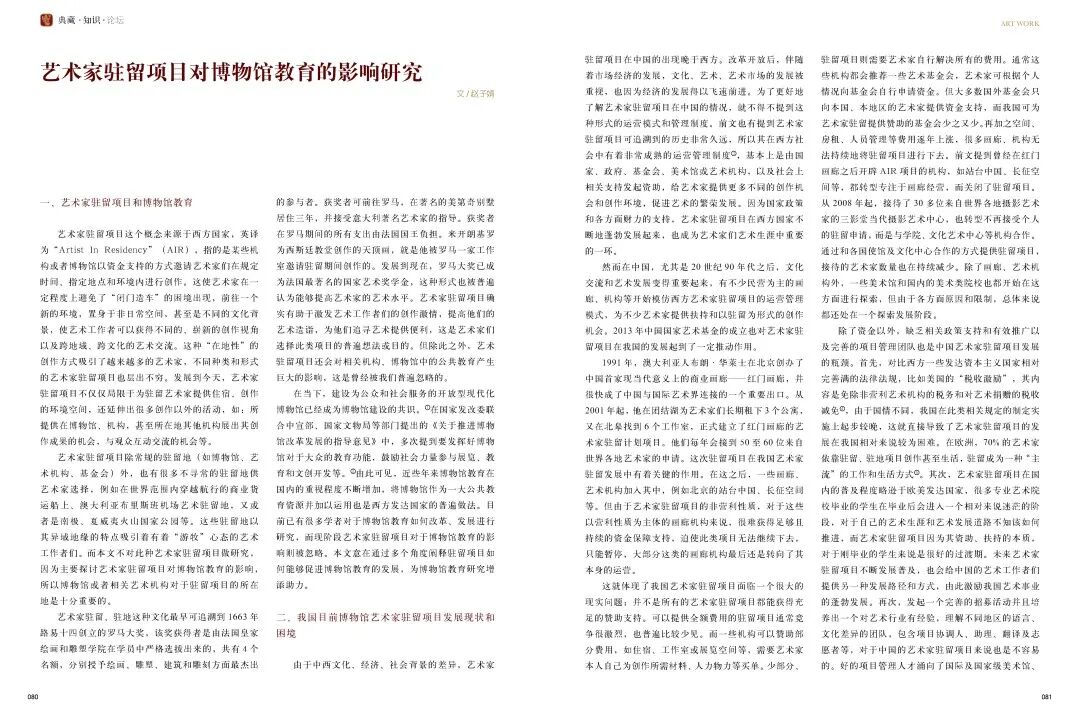 艺术家驻留项目对博物馆教育的影响研究 赵子婧