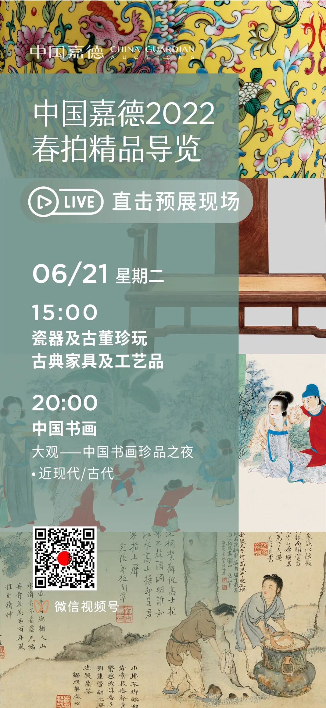 中国嘉德2022春季拍卖会将于6月22日盛大启幕,一系列精彩的直播活动将在开幕前上线。