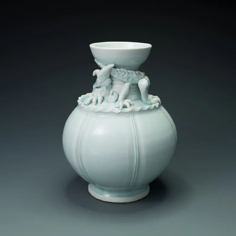 南宋 青白釉瓜棱形盘龙瓶,高 20.8 cm.,估价:港元 240,000- 300,000。此拍品将于12月3日在佳士得香港 “淡扫蛾眉 —颂德堂藏中国宋代瓷器” 拍卖呈献
