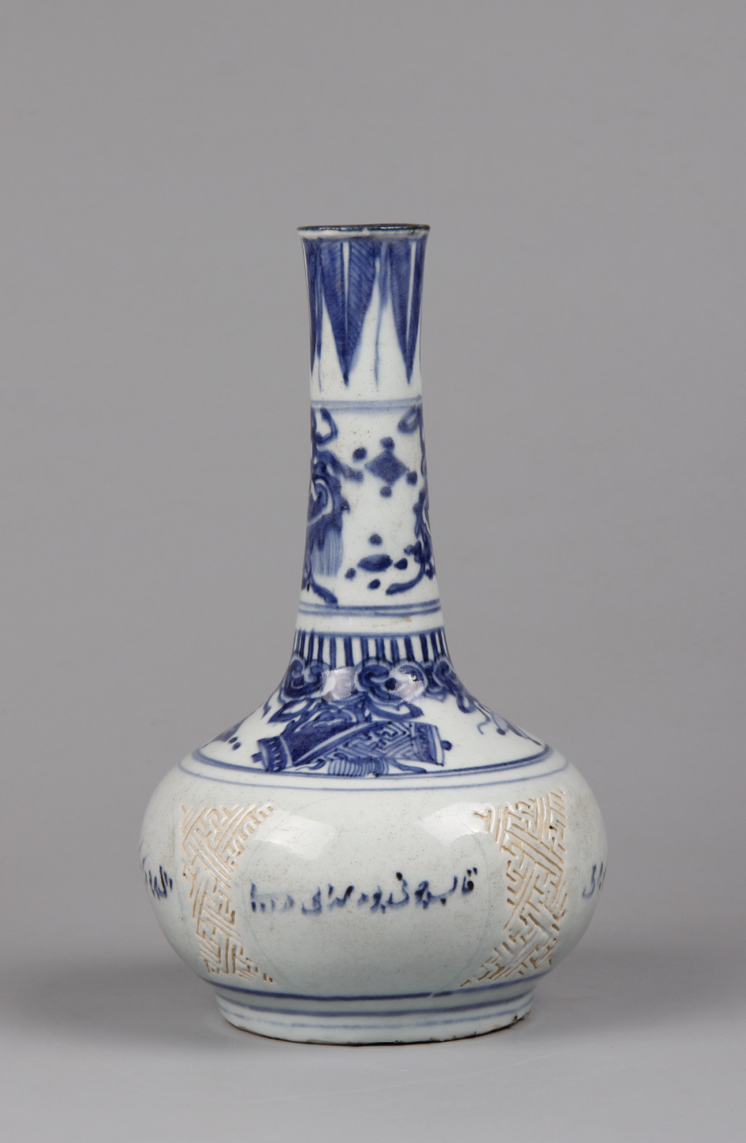 明万历 青花波斯文“鲁拜诗文”长颈瓶