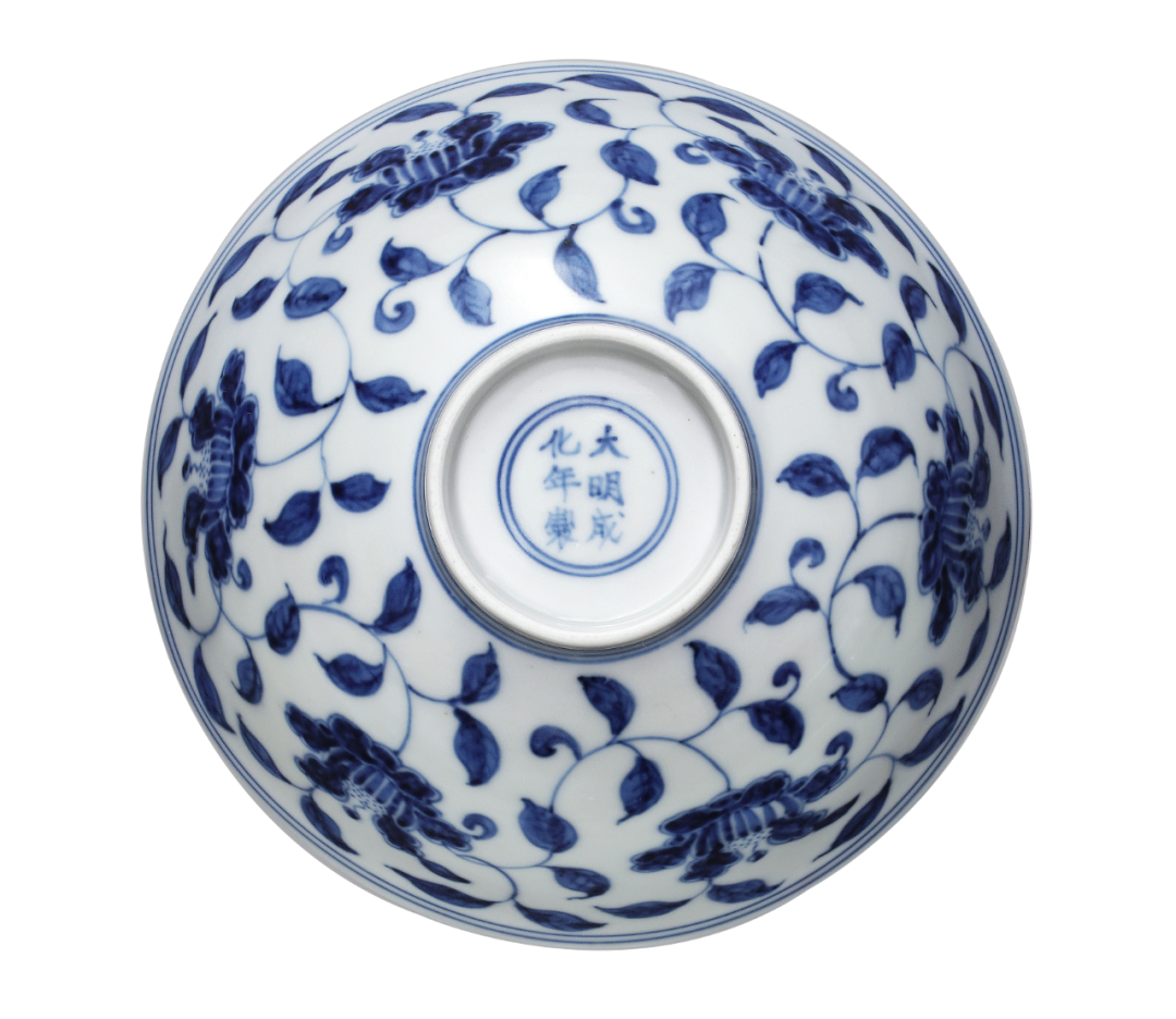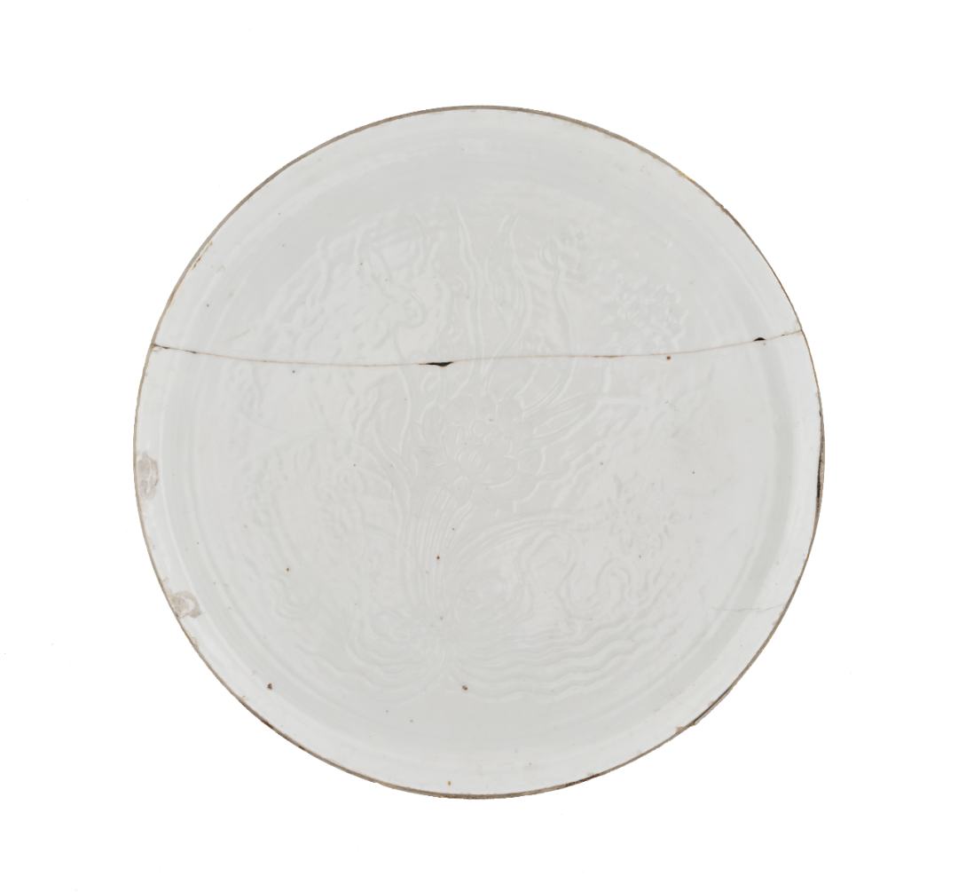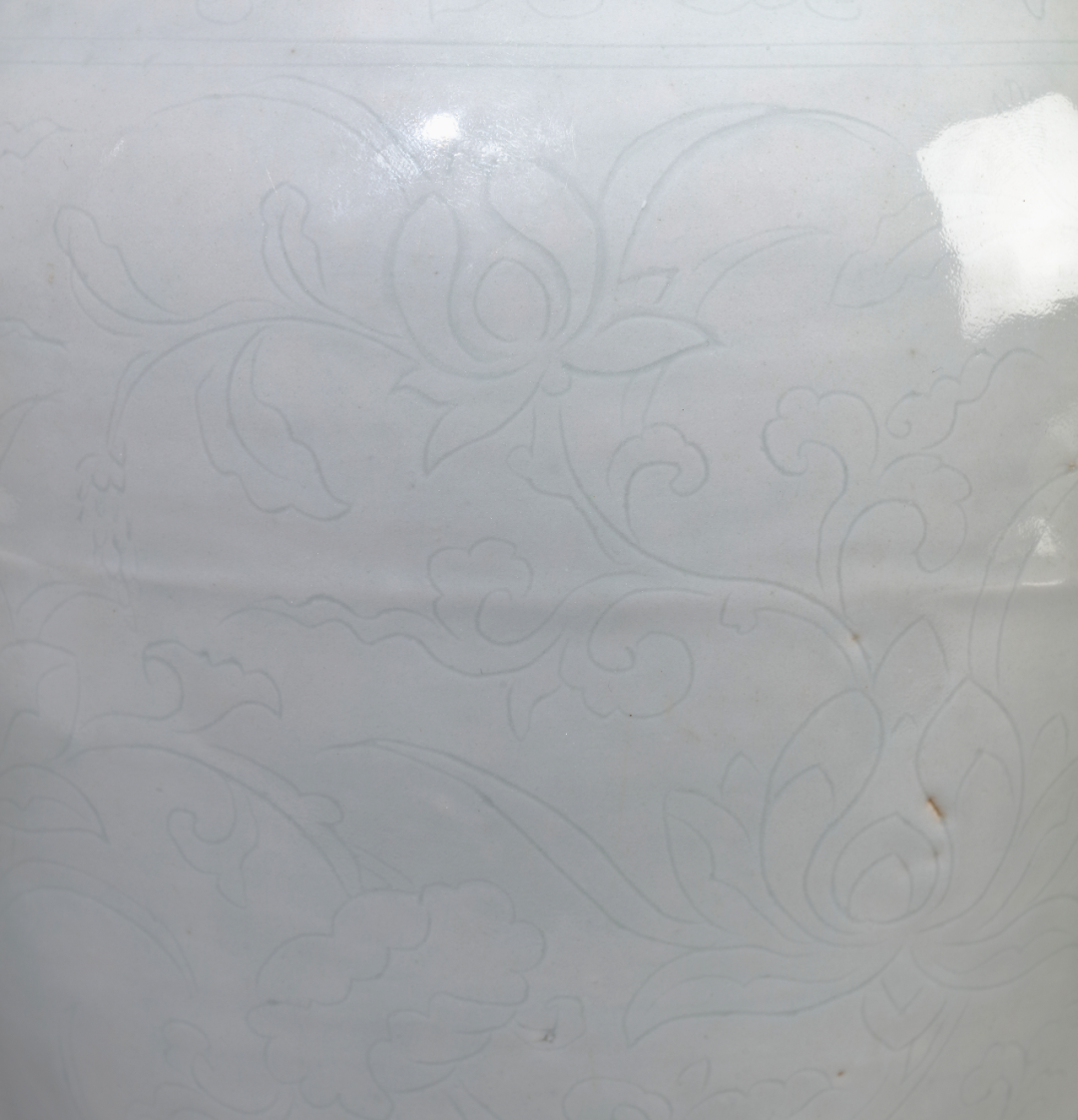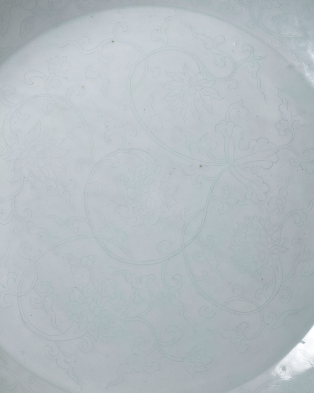 明永乐 甜白釉刻缠枝莲纹大盘(盘心局部)