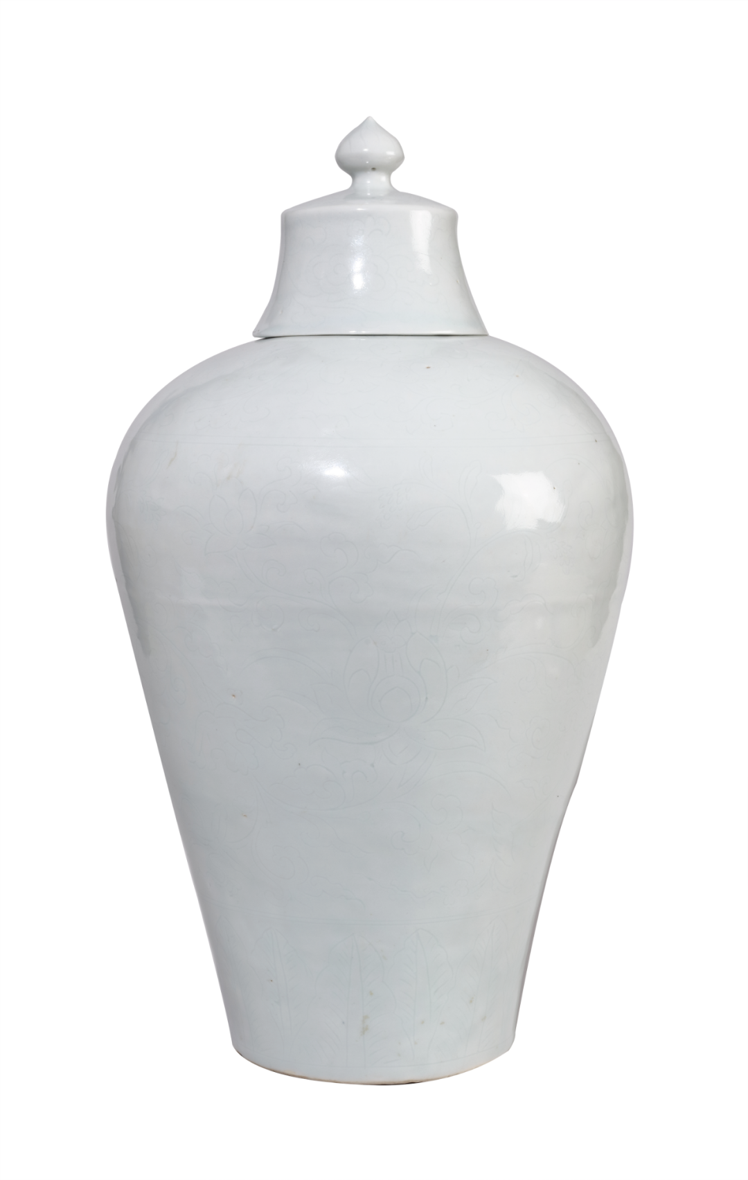 明永乐 甜白釉暗刻缠枝莲纹带盖梅瓶
