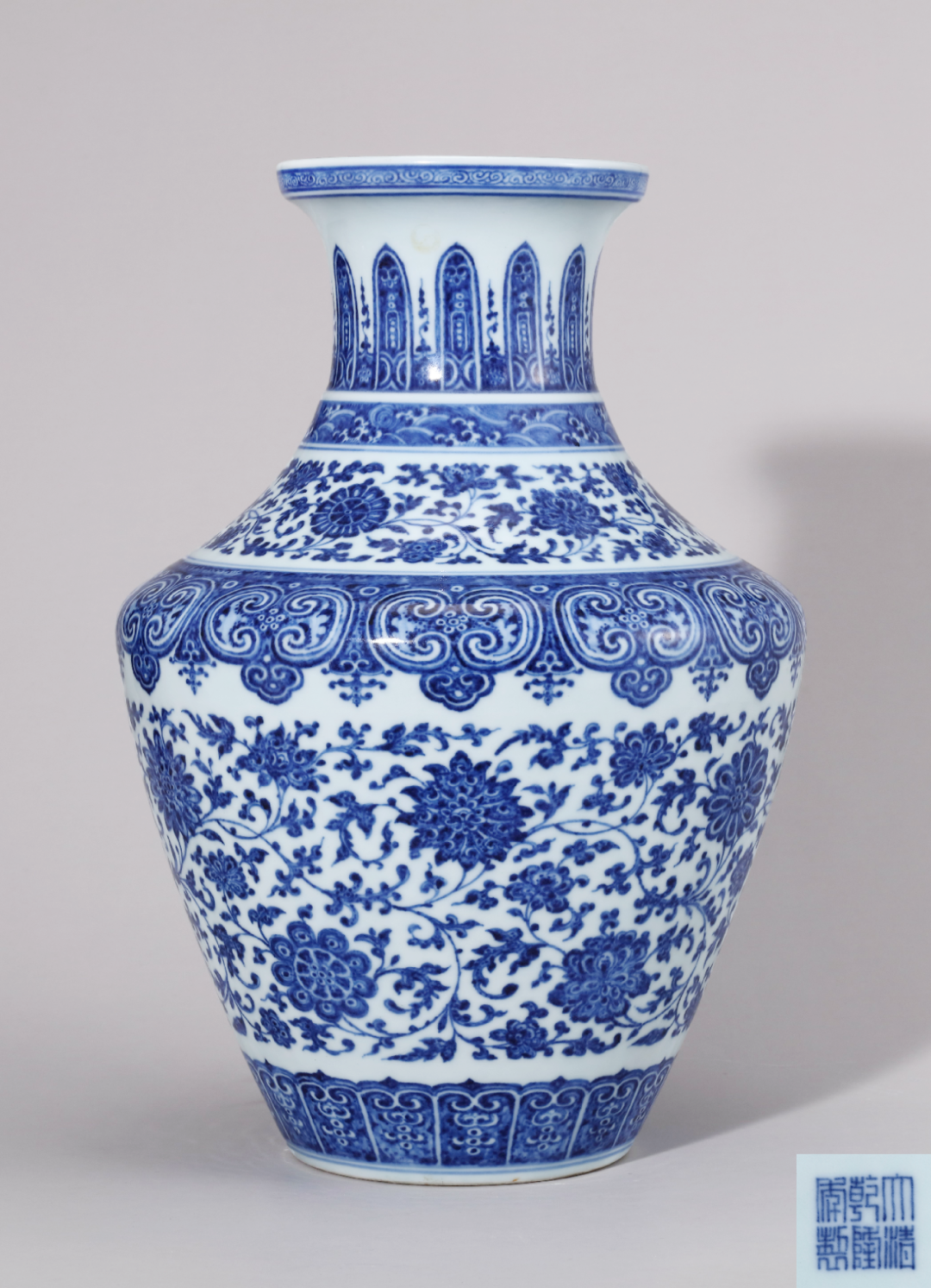 清乾隆 仿宣窑青花花卉纹罍式尊