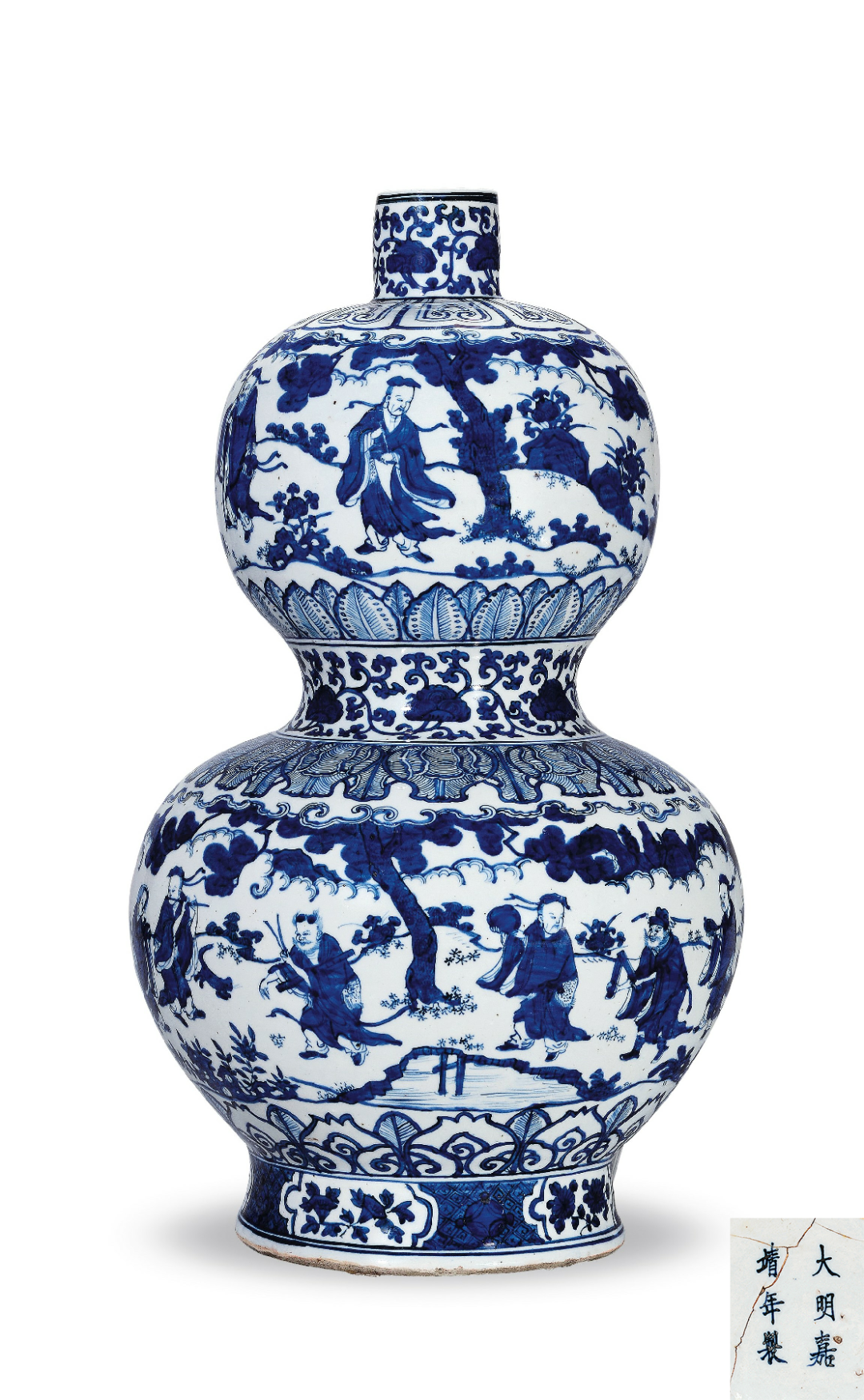 明嘉靖 青花八仙祝寿纹大葫芦瓶