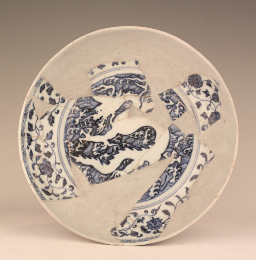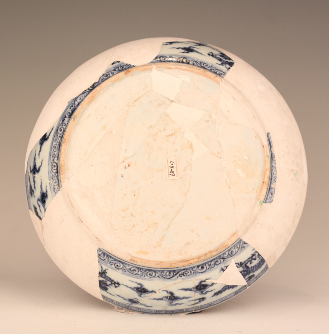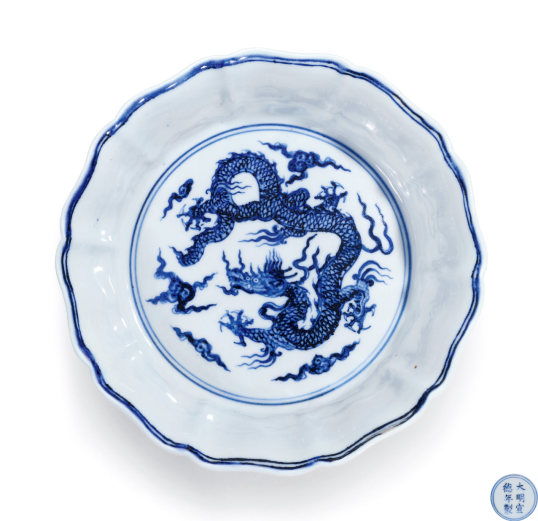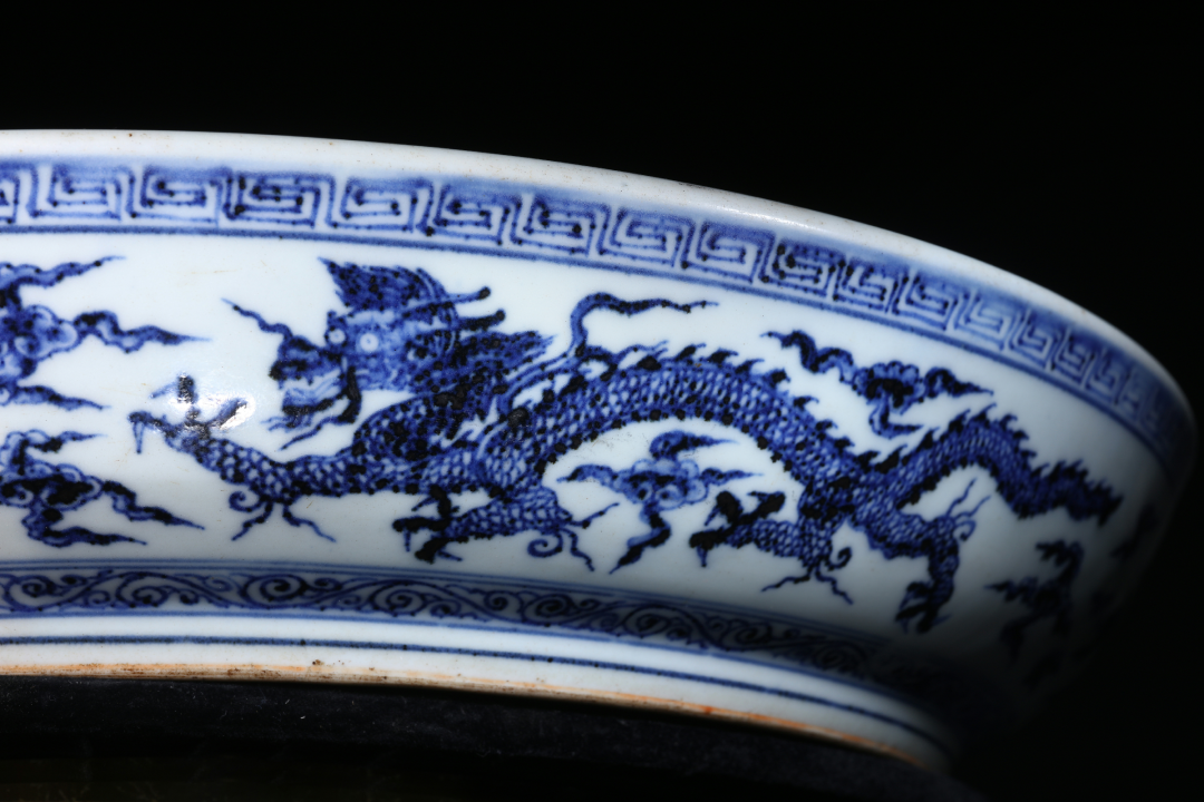 明永乐 青花留白暗刻海水龙纹大盘(塞伦森龙盘)