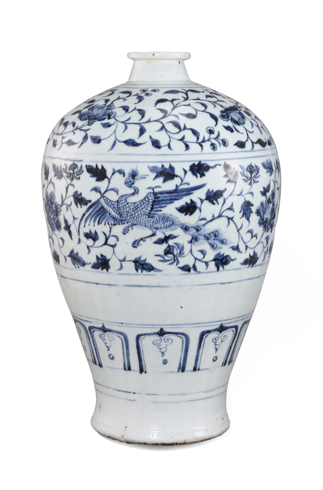 元-明洪武 青花孔雀牡丹纹大梅瓶