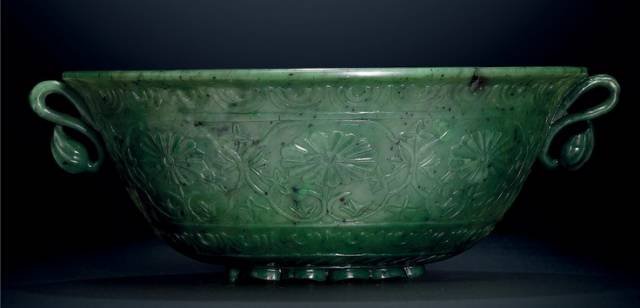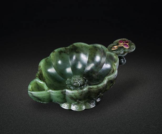 清乾隆 碧玉雕痕都斯坦式嵌宝石花式盏