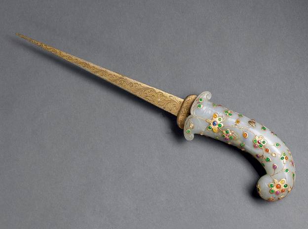 清乾隆 白玉痕都斯坦嵌宝石玉柄刀