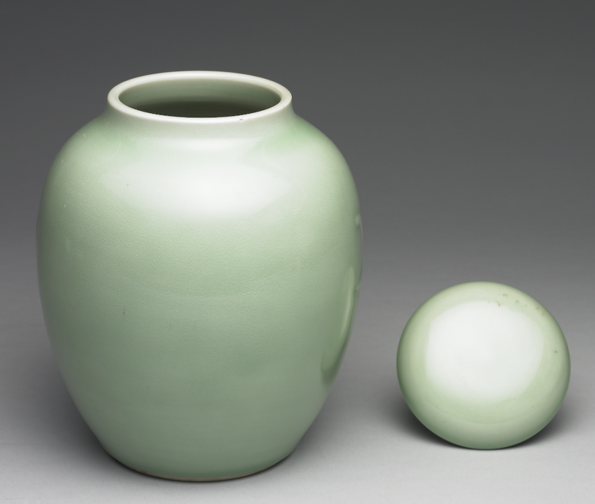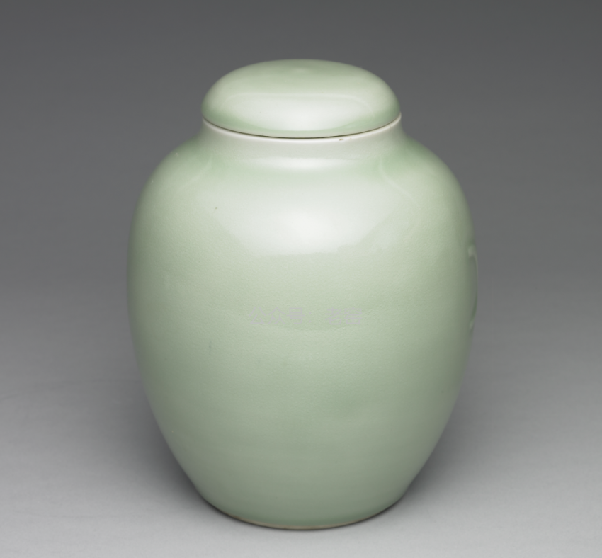 清康熙 冬青釉暗月耳茶叶盖罐(正面) 台北故宫博物院馆藏