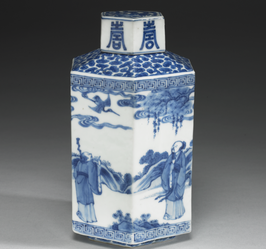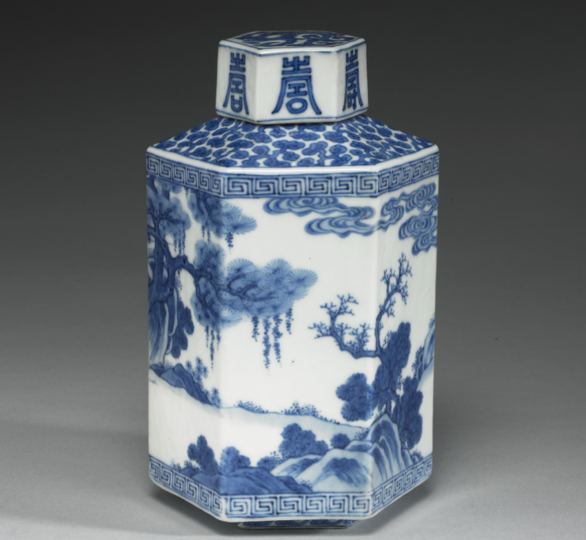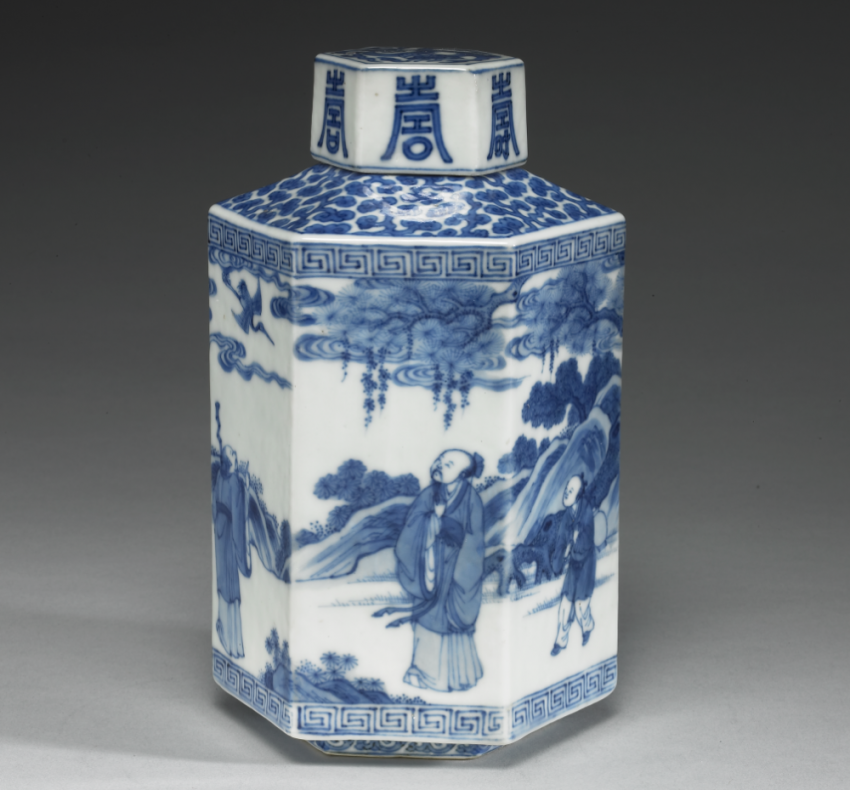 清康熙 青花山水人物六方茶叶罐(图1) 台北故宫博物院馆藏