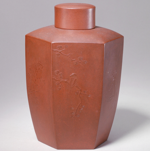 清雍正 宜兴窑紫砂莲心铭花鸟六方茶叶罐1 北京故宫博物院馆藏