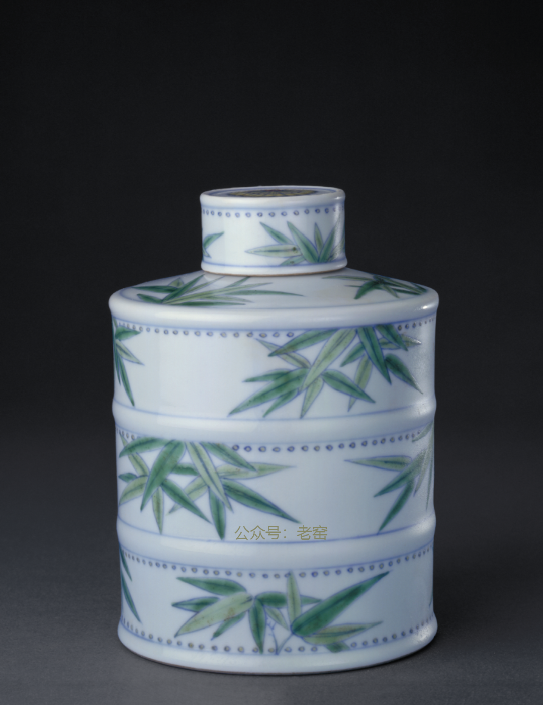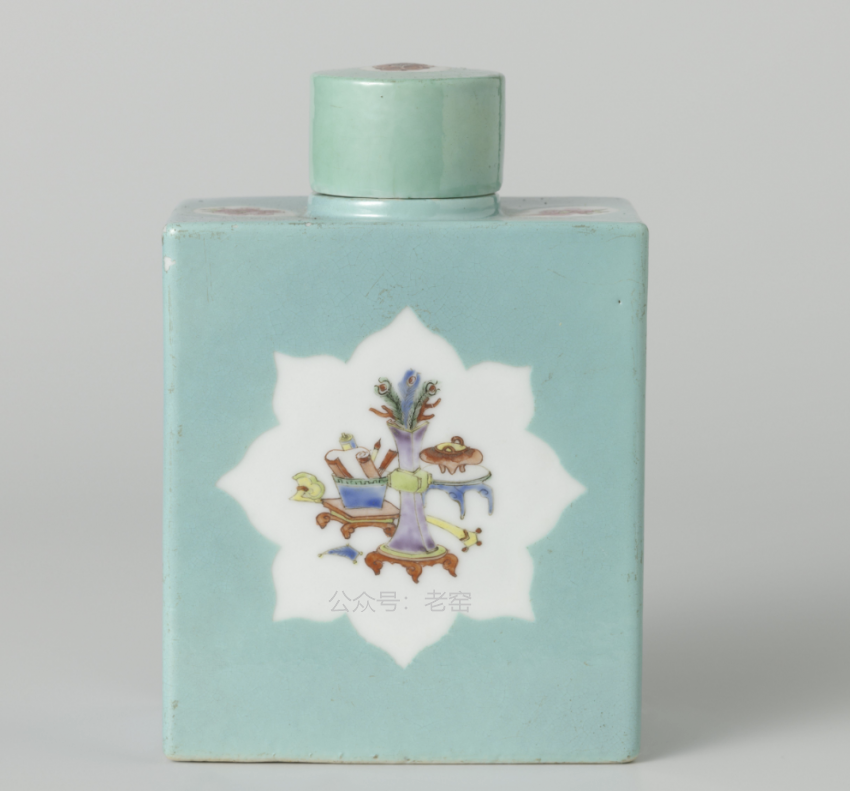 清乾隆 松石地粉彩开窗博古纹茶叶罐 阿姆斯特丹国立博物馆藏