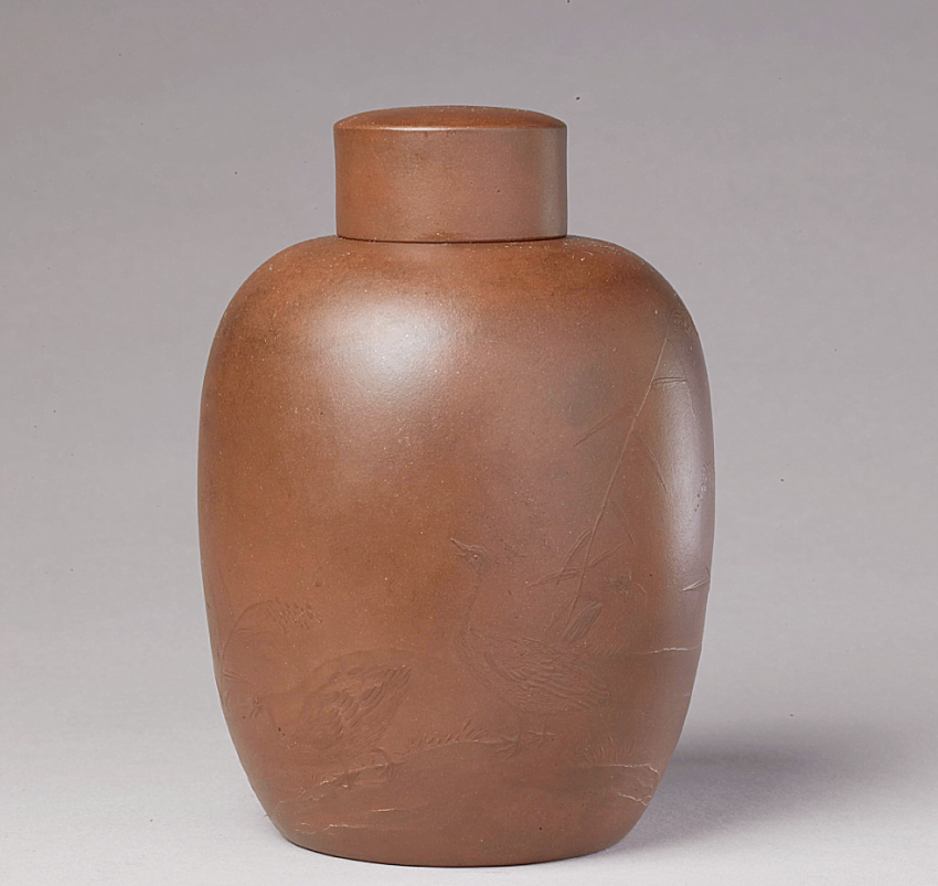 清雍正 宜兴窑紫砂泥绘芦雁纹茶叶罐1 北京故宫博物院馆藏