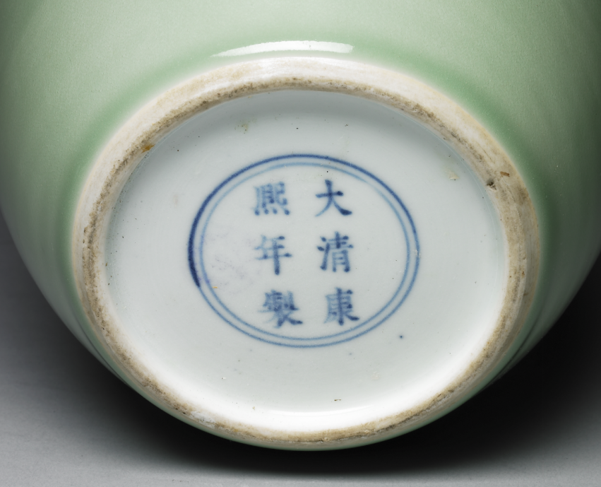 清康熙 冬青釉暗月耳茶叶盖罐(底部款识) 台北故宫博物院馆藏