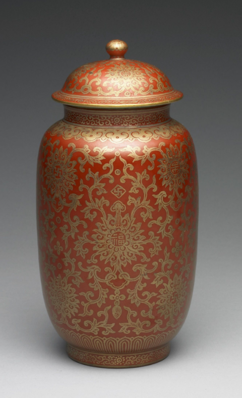 清嘉庆 珊瑚红地描金万福连连红地茶叶罐 台北故宫博物院馆藏