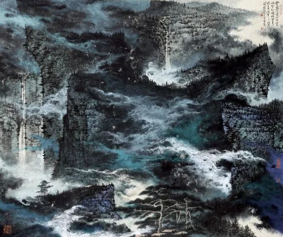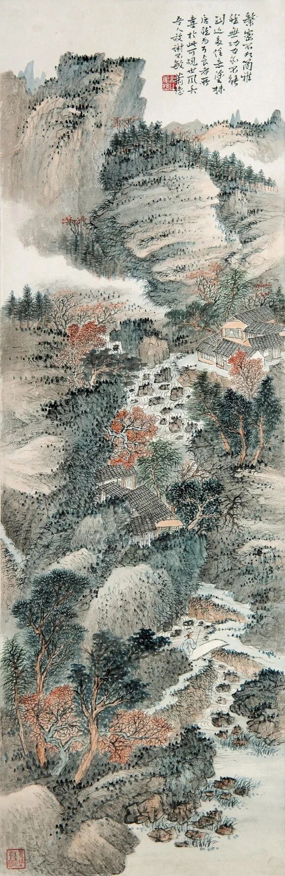 钤印:雪涛拟古(白文)、天风阁(白文)、大千秋色(朱文)