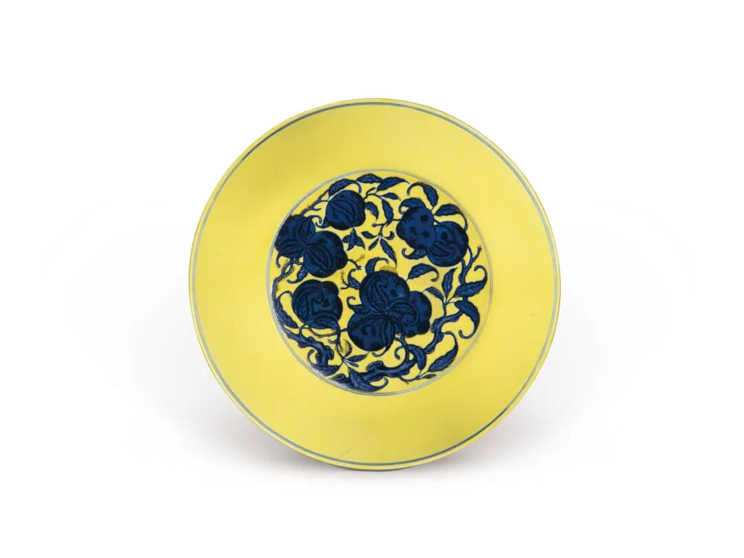 Lot 011 清光绪 黄地青花储秀宫款桃纹盘
