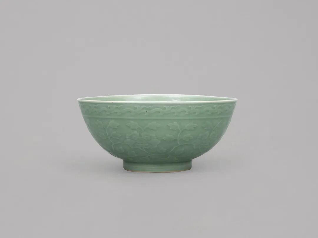 Lot 015清乾隆 青釉内刻外凸花缠枝牡丹纹碗