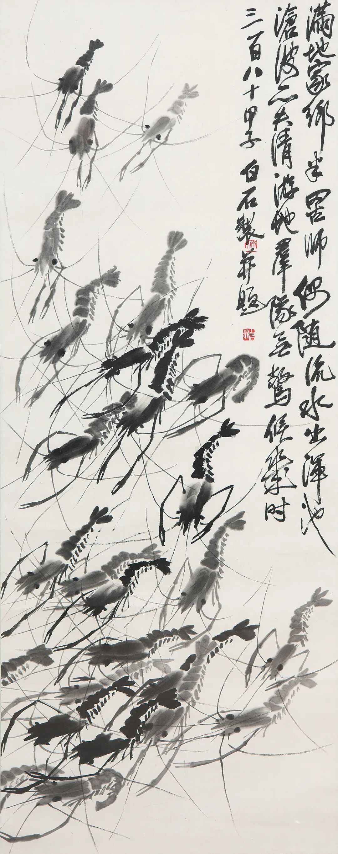 题识:满地家乡半罟师,偶随流水出浑池;沧波亦失清游地,群队无惊候几时。三百八十甲子,白石制并题。