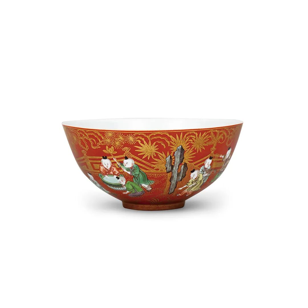 Lot 009 清嘉庆 珊瑚红釉五彩描金婴戏图碗