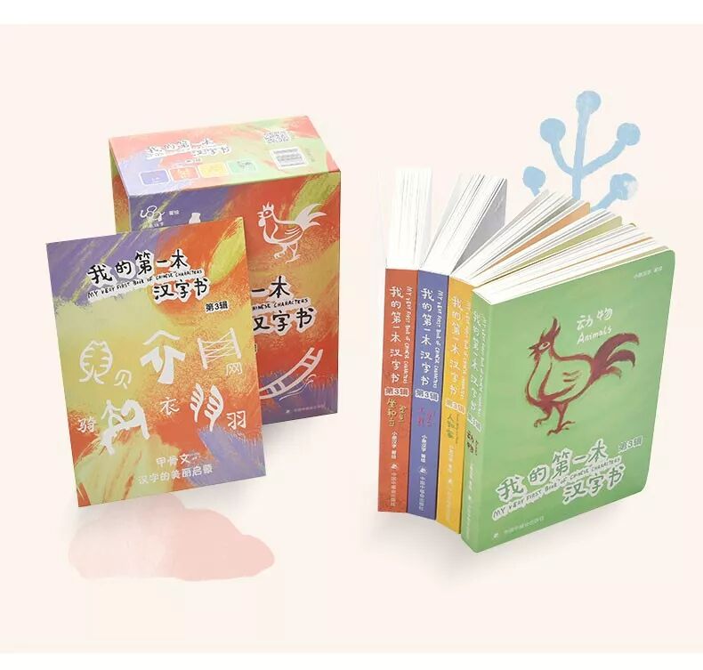 《我的第一本汉字书》第三辑无论是图画、甲骨文的绘制、汉字的设计、整本书籍的设计、整套书籍的设计,都强调了美感。