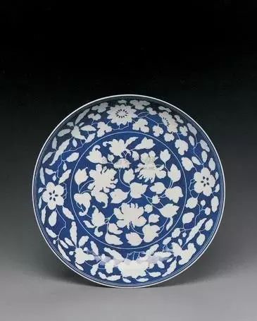 清雍正 洒蓝釉堆白花纹大盘